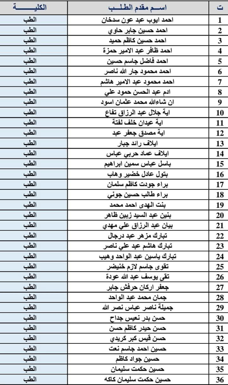 يتعين على الطلبة المدرجة أسماؤهم في القوائم أدناه مراجعة قسم الشؤون القانونية في جامعة وارث الأنبياء (عليه السلام) خلال مدة خمسة أيام من تاريخ الإعلان.