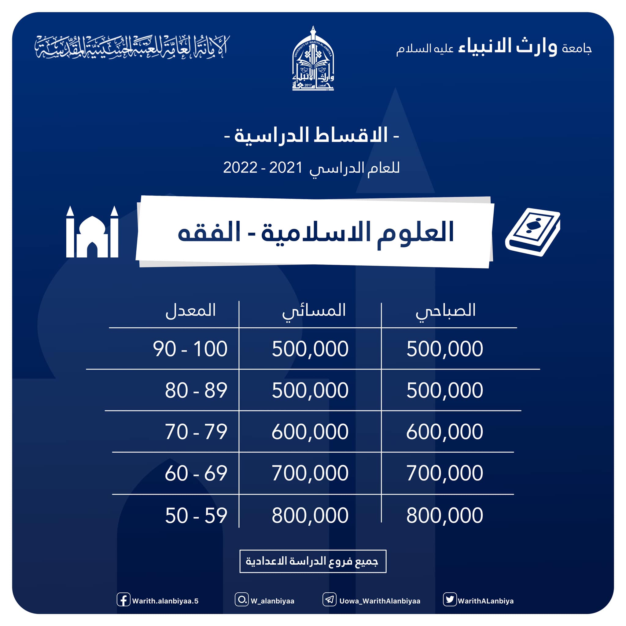 الطلبة الاعزاء الراغبين بالتقديم على كلية العلوم الاسلامية في جامعة وارث الانبياء(عليه السلام)