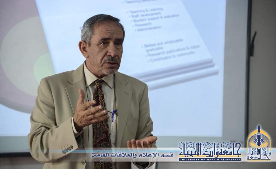 اُقيمت في جامعة وارث الانبياء ندوة علمية بعنوان( تحدّيات في جودة التعليم) ألقاها البروفيسور حمزة ادريس المحنه مساعد رئيس جامعة صحار للشؤون الاكاديمية في سلطنة عُمان، وقال البروفيسور ان الندوة كانت عن مفهوم الجودة وماهي المعايير العالمية التي يجب ان تطبقها مؤسسات التعليم العالي، بلحاظ أن لكل بلد معايير للجودة، وأضاف اننا ننصح بان تكون فكرة ضمان الجودة وتطبيقها متبناة من رئاسة الجامعة وهي أيضا مسؤوليّة الجميع، واني ارى ان جامعة وارث الأنبياء بكوادرها وبامكانياتها وتحت مضلة العتبة الحسينية المقدسة التي تريد الخير للعملية التعليمية قادرة على تطبيق مبدأ ضمان الجودة ولأنها في بداية المشوار فان تطبيق الجودة اسهل.