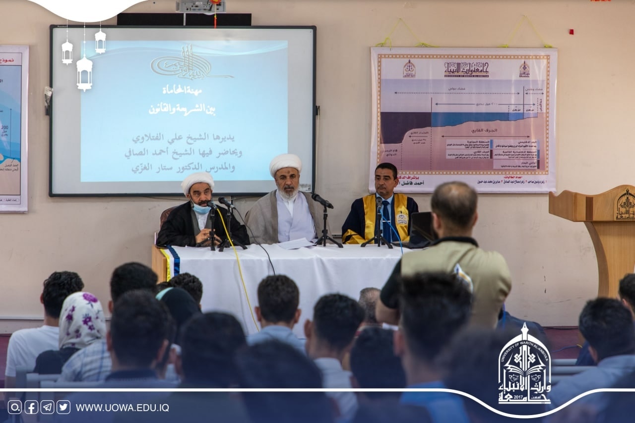 برعاية السيد رئيس الجامعة الاستاذ الدكتور ابراهيم الحياوي ، أقامت كلية القانون وبالتعاون مع قسم الارشاد التربوي والتوجيه النفسي ندوة بعنوان(مهنة المحاماة بين القانون والشريعة).