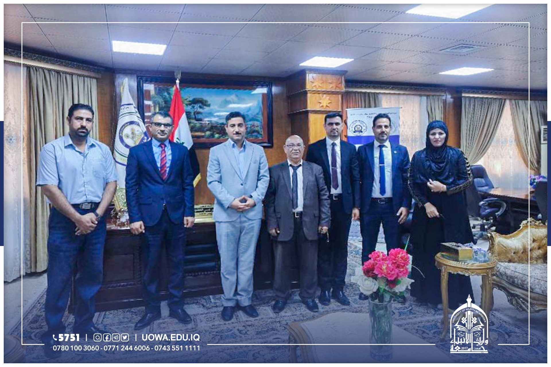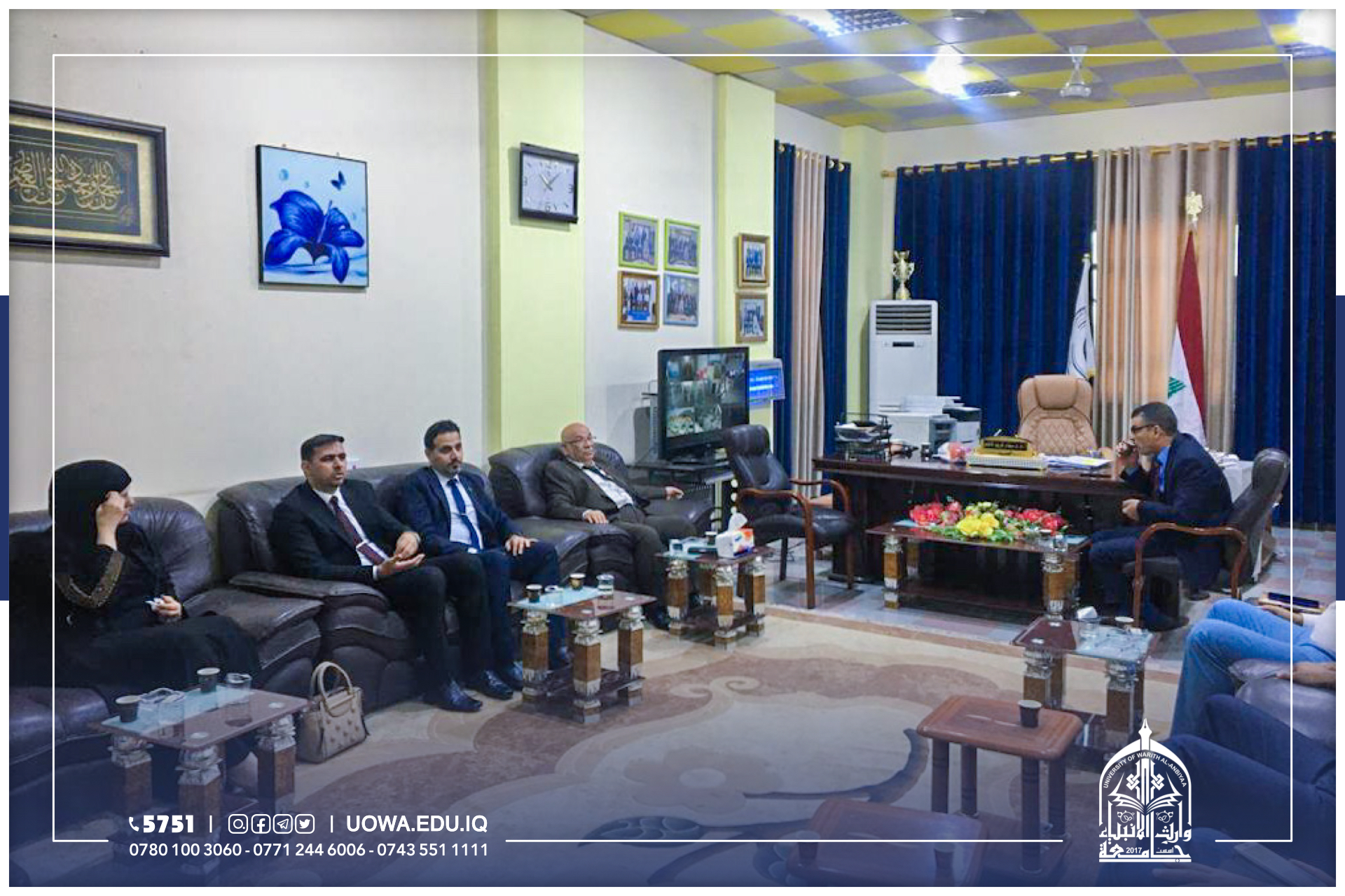 كلية الاارة والاقتصاد في جامعة وارث الانبياء جامعة المثنى وكان باستقبالهم الأستاذ المساعد الدكتور صفاء كريم عميد الكلية.