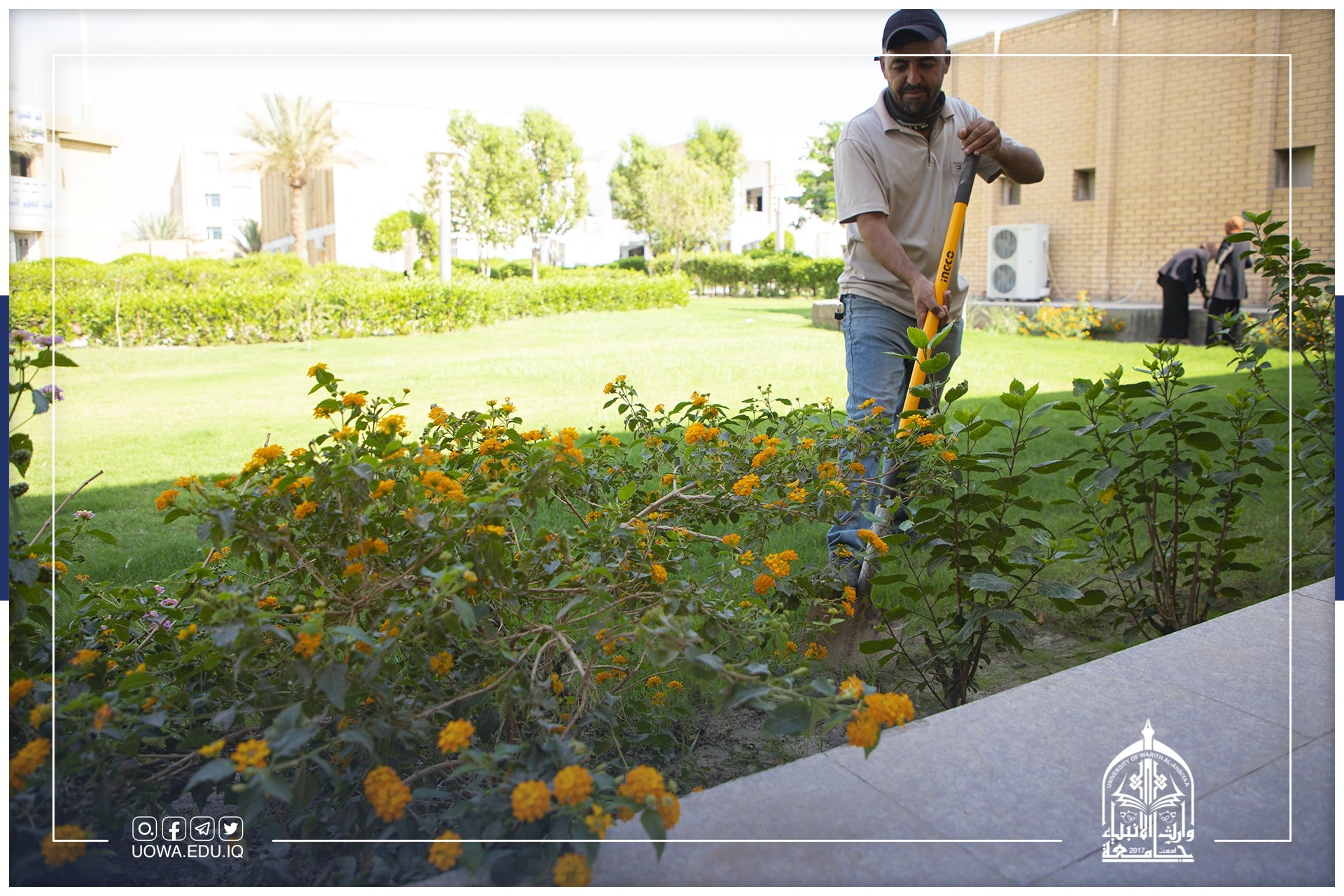 جهود استثنائية تقدمها ملاكات قسم شؤون الديوان في جامعة وارث الانبياء(عليه السلام) عبر الاهتمام بالمساحات الخضراء ونظافة الجامعة لإظهارها بأبهى صورة.