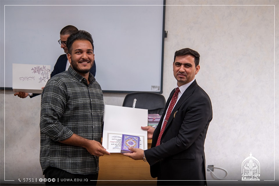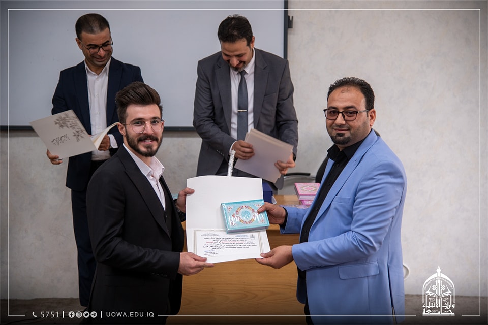 اقامت كلية الإدارة والاقتصاد في جامعة وارث الانبياء (عليه السلام) احتفالية لتكريم الطلبة الاوائل في قسمي المحاسبة وإدارة الاعمال، وفي كلمة القاها في الحفل بين السيد عميد الكلية الاستاذ الدكتور عواد الخالدي أن هذا التكريم جاء لتثمين جهود الطلبة في الدراسة والتفوق وتشجيعهم على بذل المزيد، وتحفيزاً للطلبة الاخرين ليحذوا حذو زملائهم .