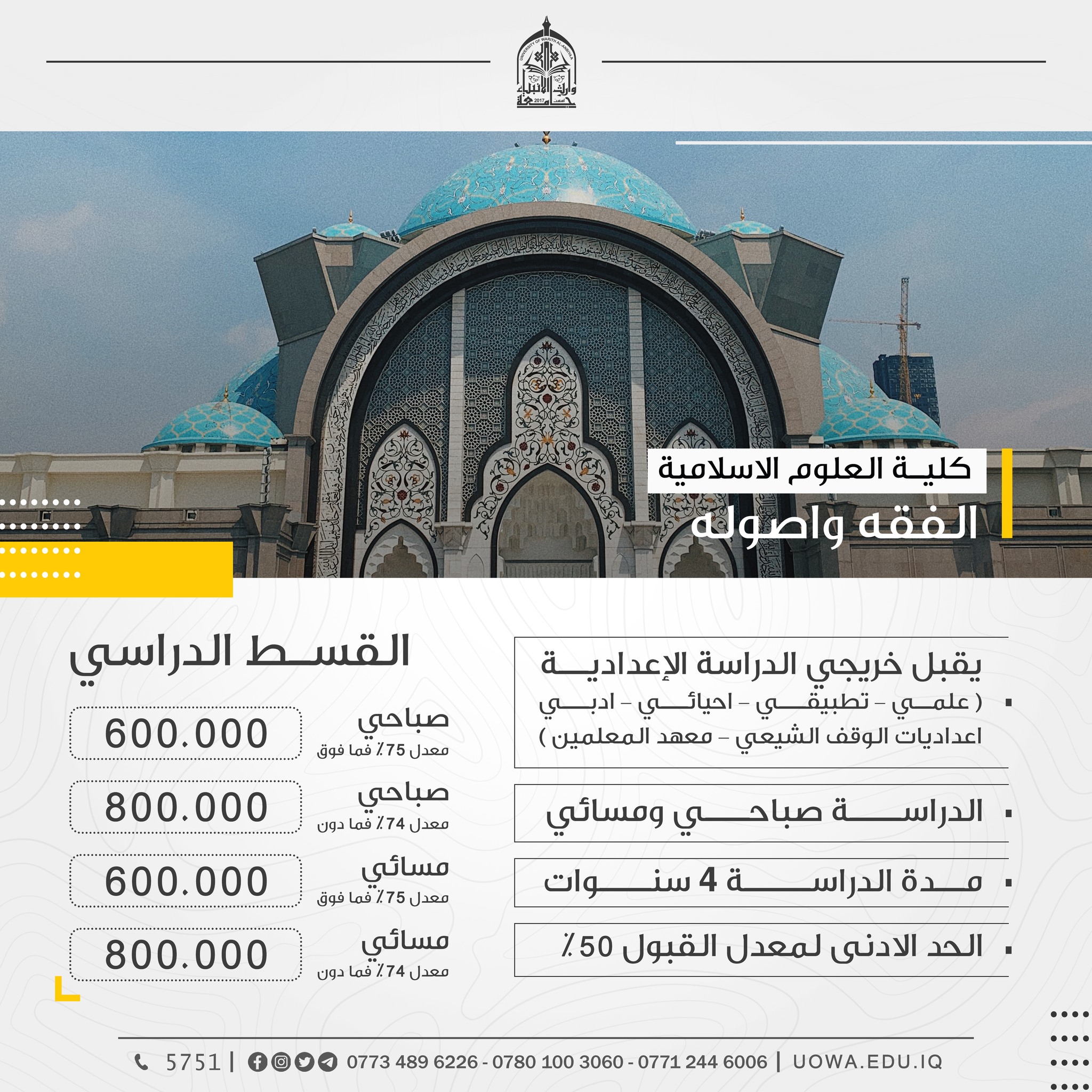 سارعوا بالتسجيل لكي لاتفوتوا فرصة الدراسة الاكاديمية في كليات واقسام جامعة وارث الانبياء(عليه السلام)