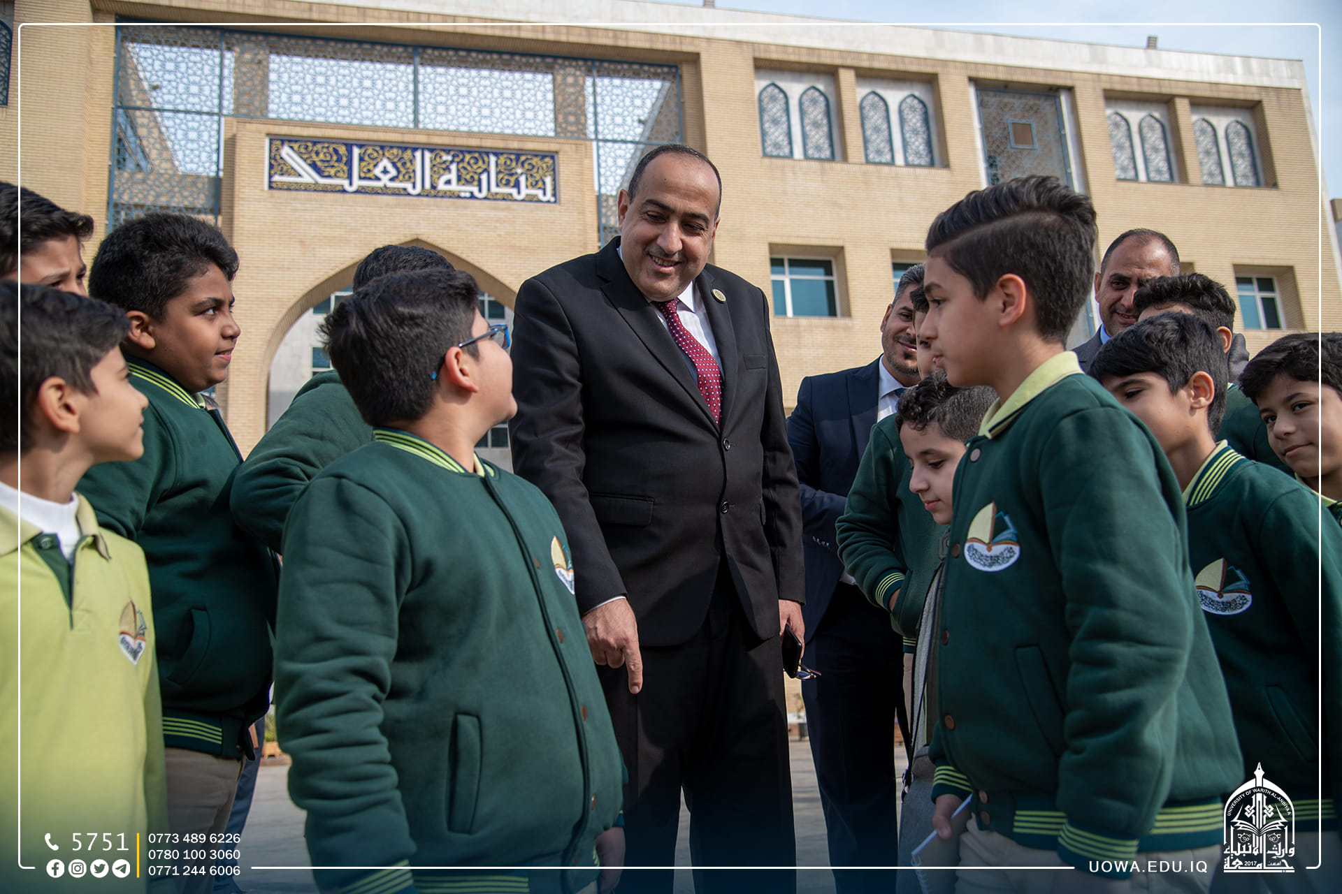 استقبلت جامعة وارث الأنبياء (عليه السلام) عدد من طلبة مرحلة الخامس الابتدائي في مدرسة الق الوارث الابتدائية التابعة للعتبة الحسينية المقدسة، وتجول الطلبة في أروقة الجامعة وكلية التمريض واطلعوا على المختبرات العلمية فيها، وتم تقديم شرح مختصر عن مختبر الكيمياء والتشريح، إذ تساهم هذه الرحلات في تنمية مهارات الطلبة، وفي نهاية السفرة خط الطلبة رسائل شكر الى الجامعة بأناملهم اليافعة، عبروا من خلالها عن التفاصيل الجميل التي شاهدوها في الجامعة بأنامل بريئة .