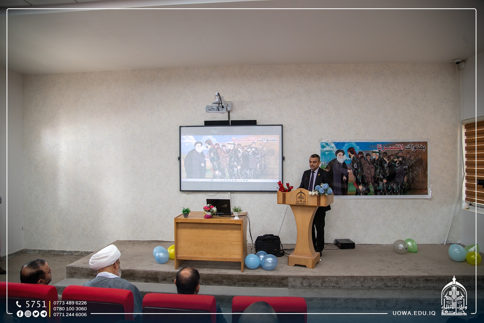 برعاية السيد رئيس الجامعة الاستاذ الدكتور ابراهيم الحياوي وبإشراف عميد كلية الهندسة الاستاذ الدكتور واقد الموسوي أقامت كلية الهندسة في جامعة وارث الانبياء (عليه السلام) حفلاً بمناسبة يوم النصر العراقي ضد العصابات الإرهابية.