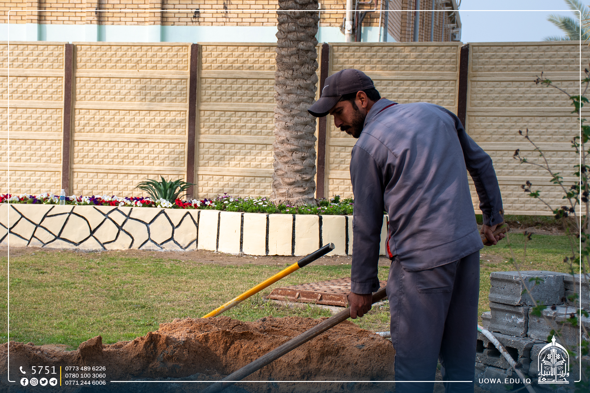 استمرار الاعمال العمرانية والتطويرية في كليات واقسام جامعة وارث الانبياء(عليه السلام)، وجهود استثنائية لملاكات قسم شؤون الديوان الجامعة في أنجاز الاعمال التطويرية والاهتمام بالمساحات الخضراء ونظافة الجامعة لإظهارها بأبهى صورة.