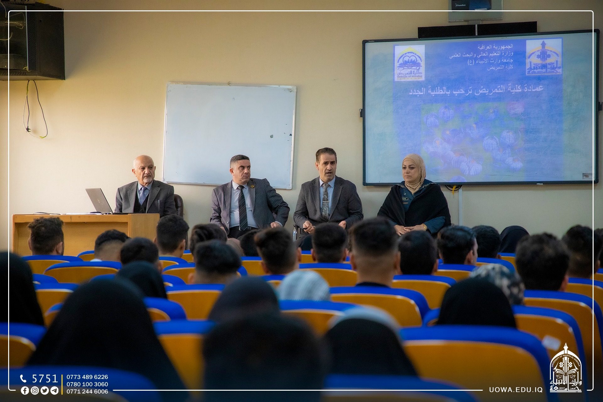 طلبة المرحلة الاولى في كلية التمريض يباشرون بالدوام الرسمي ، حيث تم استقبالهم من قبل السيد المساعد الإداري الاستاذ الدكتور نوفل الاعرجي وعمادة الكلية .