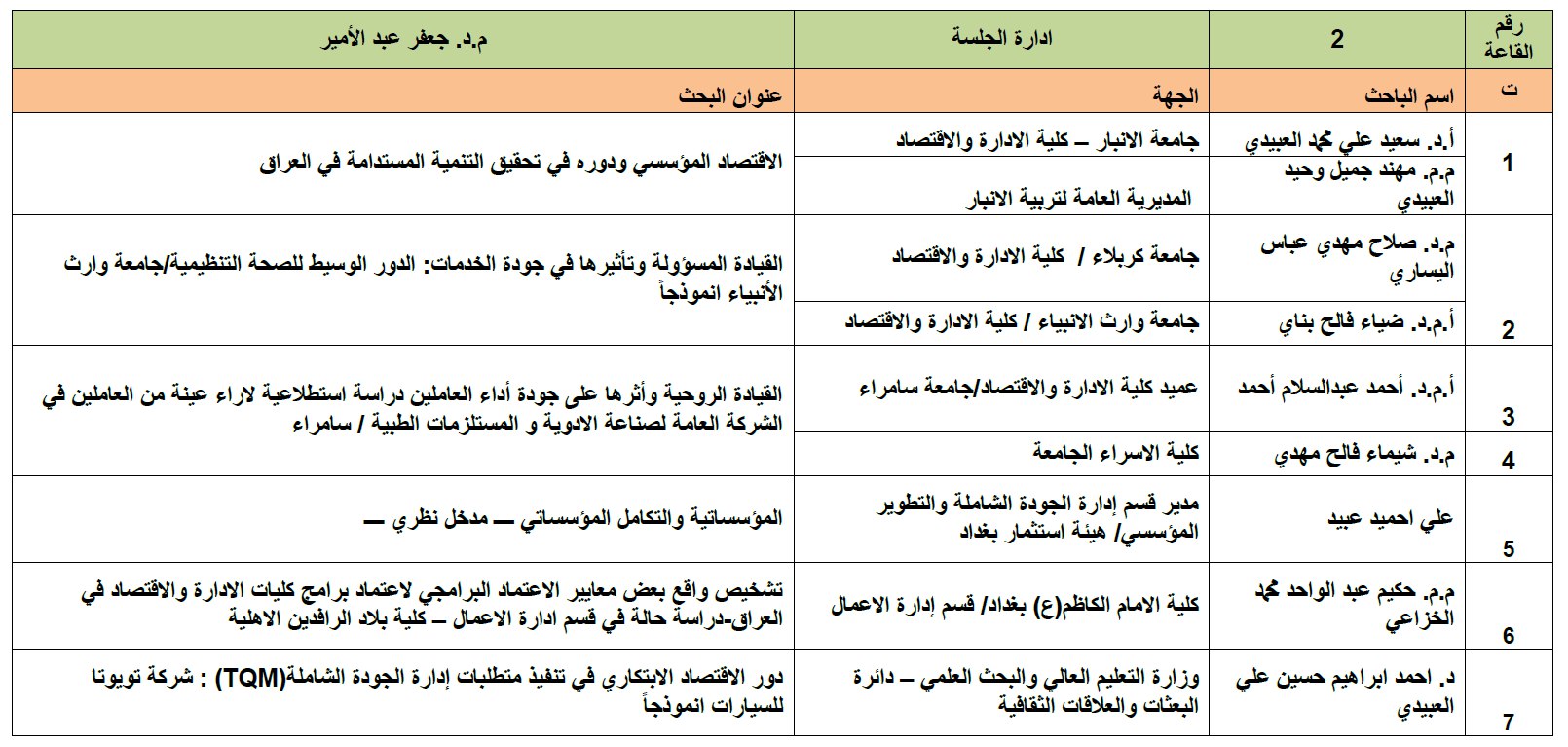 تفقد الجلسات البحثية رئيس جامعة وارث الأنبياء الدكتور إبراهيم الحياوي حيث حضر فيها عدد من الأساتذة والباحثين والمهتمين بمجال فاعلية الجودة في تطوير الإداء المؤسسي. شهد المؤتمر عروضًا بحثية هادفة ونقاشات غنية أسهمت في إثراء المعرفة وتبادل الخبرات.