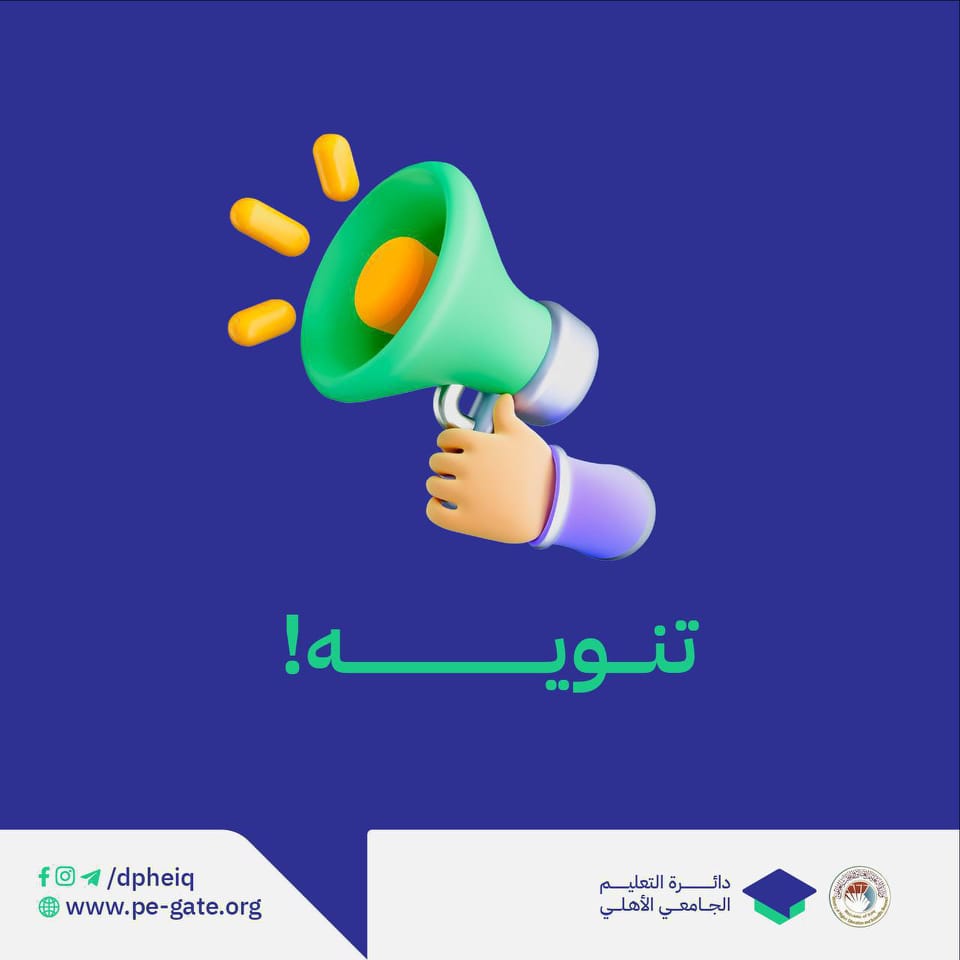 *أعزاؤنا الطلبة، إن عملية التقديم للجامعات والكليات الأهلية في البوابة الثانية تنتهي مساء السبت الموافق (3ـ12ـ2022) القادم.