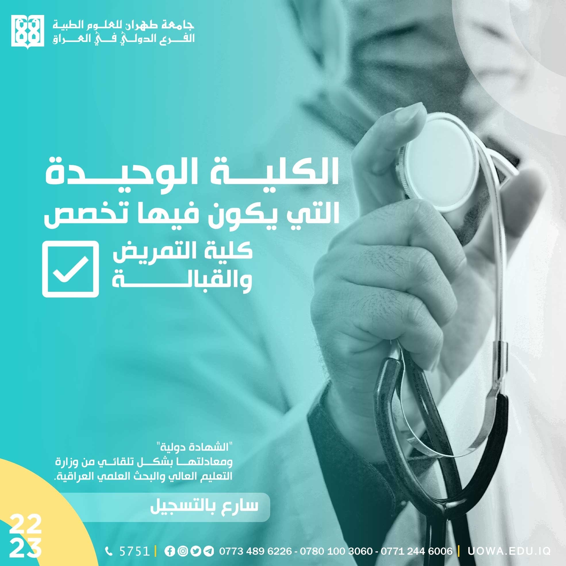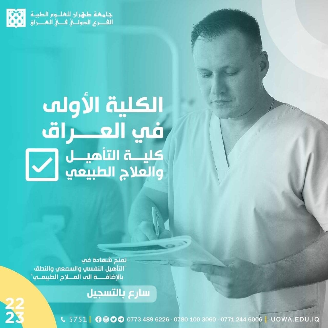 الى الطلبة الراغبين بالتقديم على كلية (التأهيل والعلاج الطبيعي،وكلية التمريض والقبالة) في جامعة السبطين