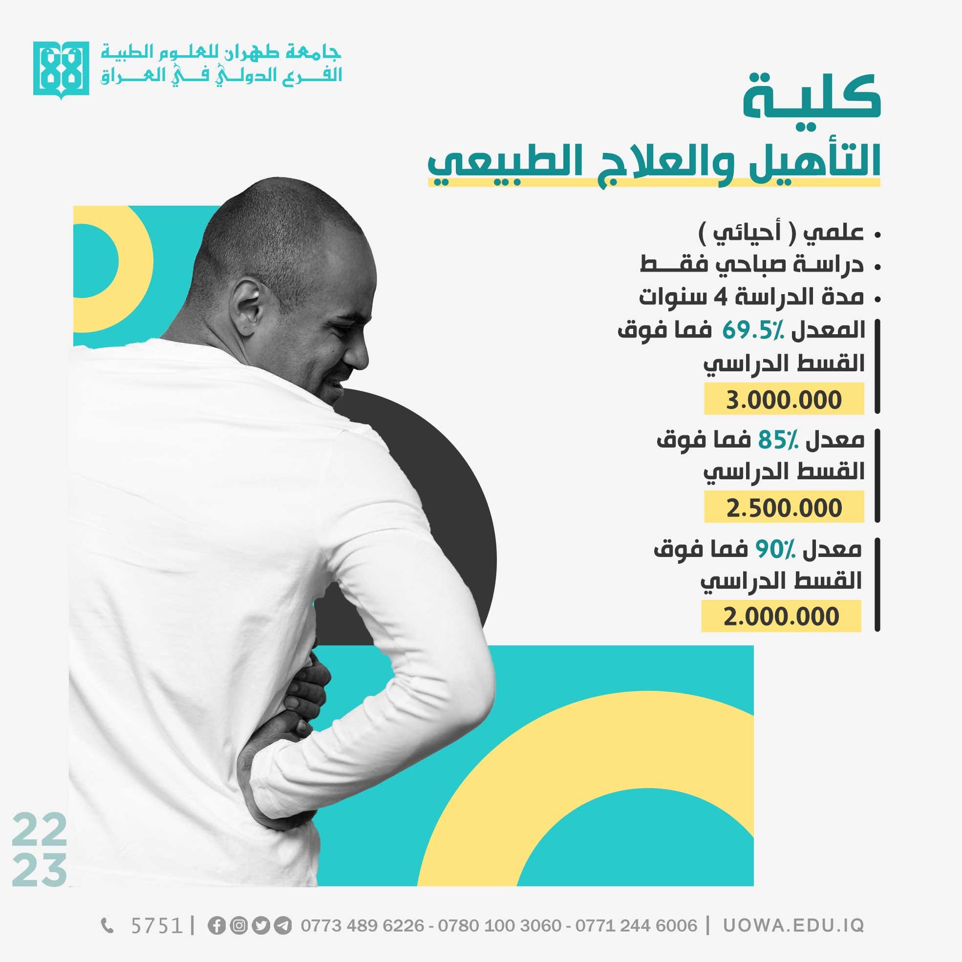 *كلية التأهيل والعلاج الطبيعي /صباحي فقط/الحد الادنى للتقديم 69.5