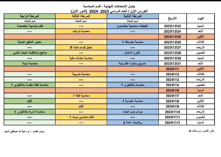 جدول الامتحانات النهاية للكورس الاول 2023-2024