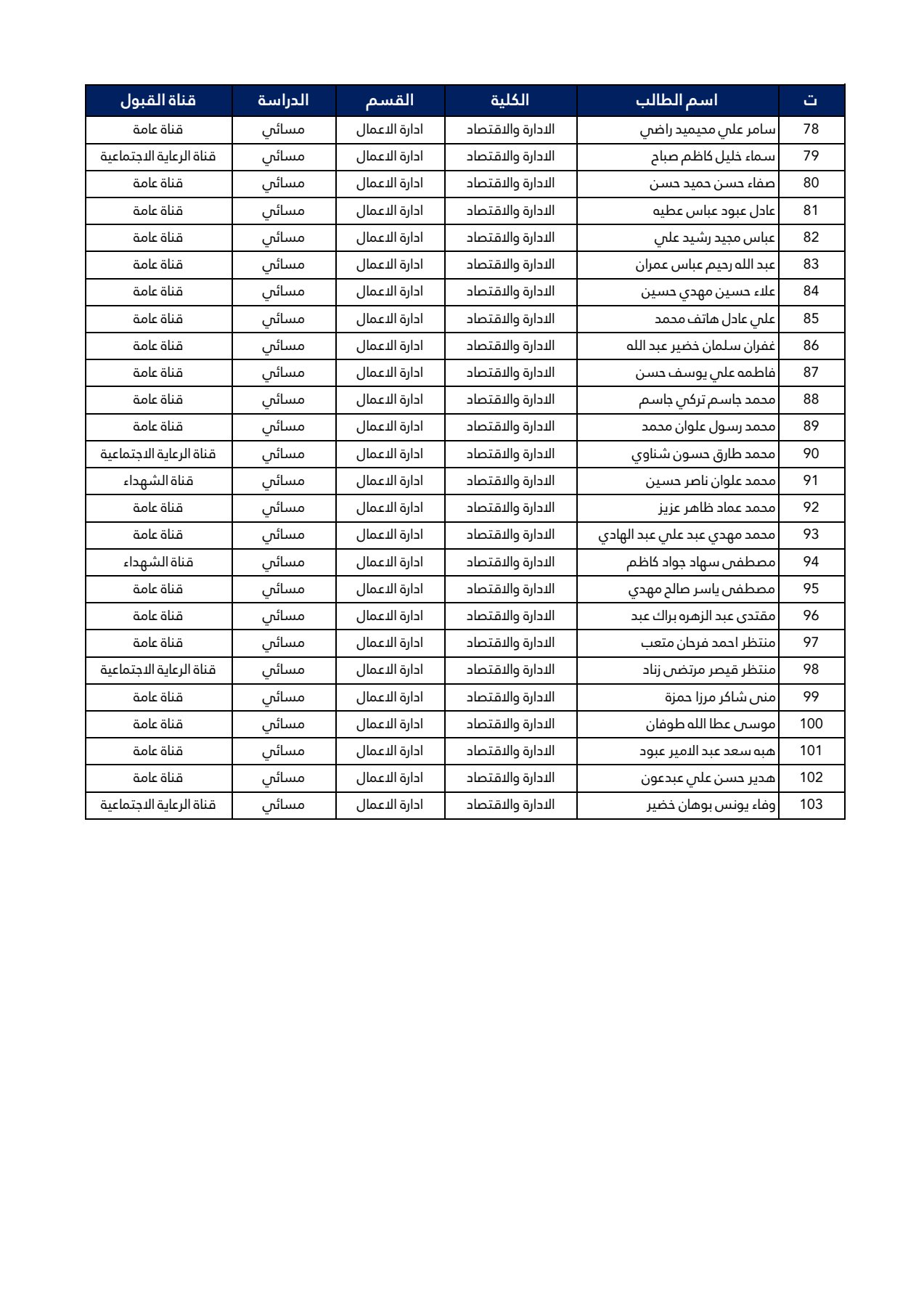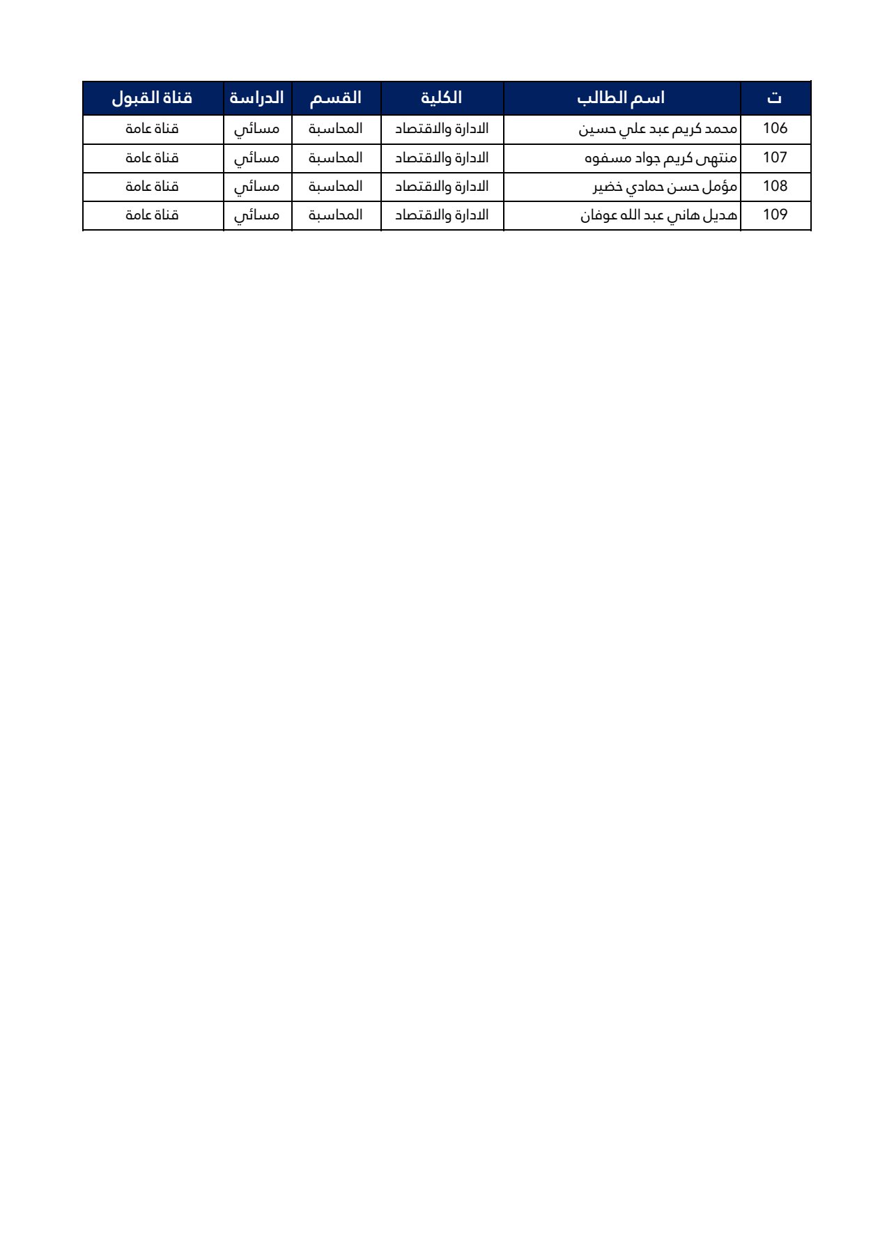 خاص للطلبة الاوائل في كلية الإدارة والاقتصاد