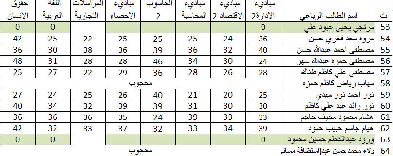 السعيات النهائية للكورس الثاني -قسم ادارة الاعمال مرحلة الاولى وللدراسة الصباحية والمسائية /2018-2019
