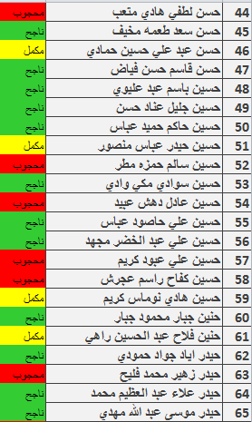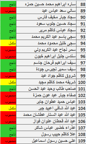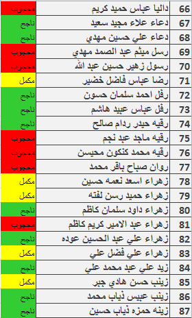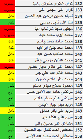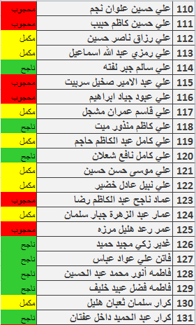 نتائج امتحانات الكورس الاول قسم المحاسبة المرحلة الثانية للدراسة الصباحية