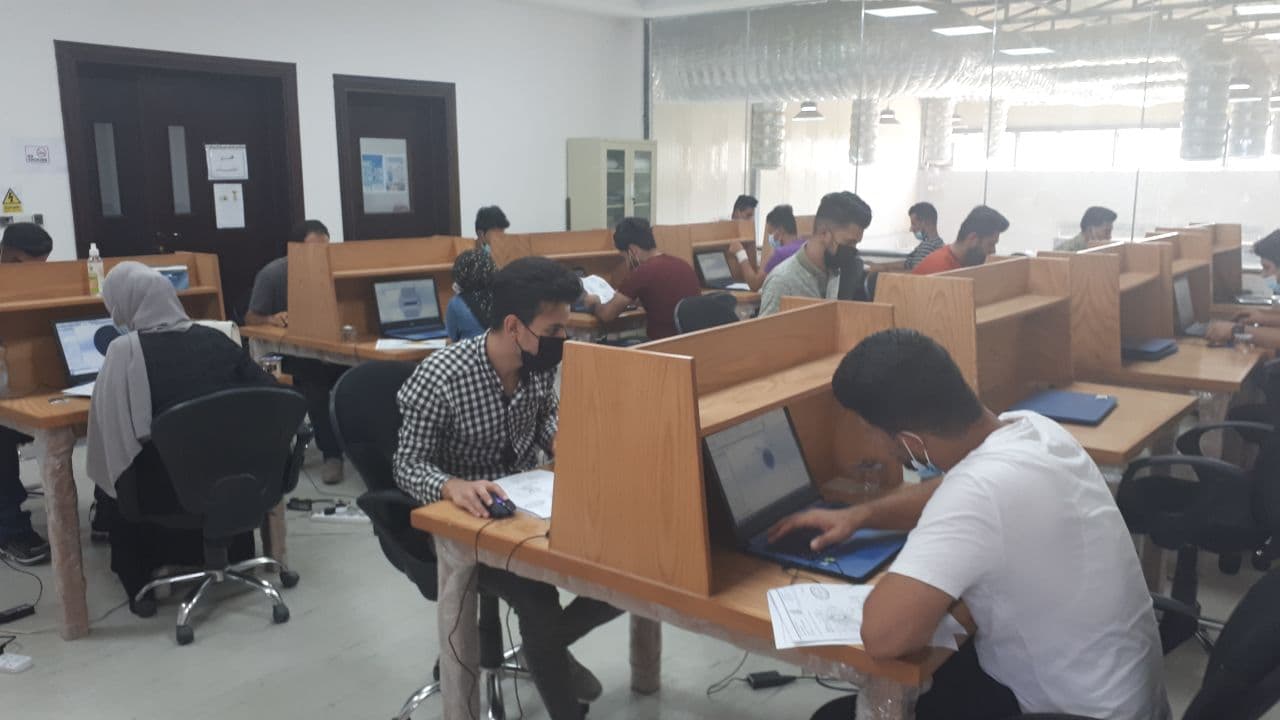 جانب من الامتحان الحضوري لطلبة المرحلة الرابعة - قسم الهندسة المدنية يوم الثلاثاء المصادف 28/7/2021 وسط اجراءات وقائية مشددة.