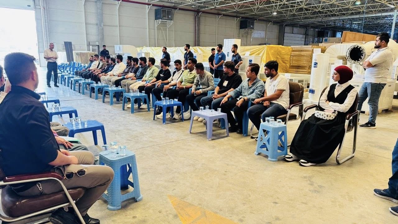 بهدف تعزيز الجانب العملي والتطبيقي لدى الطلبة وربط المادة النظرية بالتطبيق الميداني، نظم قسم هندسة تقنيات التبريد والتكييف في كلية الهندسة زيارة علمية إلى معمل وارث المتخصص في صناعة أجهزة التكييف لطلبة المرحلة الأولى حيث اطلع الطلبة على أحدث التقنيات المستخدمة في عمليات التصنيع وأبدوا تفاعلهم واهتمامهم الكبير بهذه التجربة التي تسهم في تطوير مهاراتهم وفهمهم للمجال العملي و التطبيقي