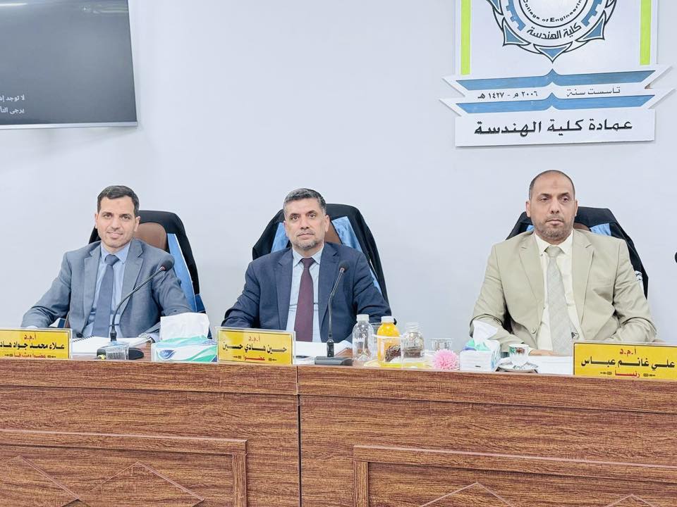 “مشاركة عميد كلية الهندسة في جامعة وارث الأنبياء (ع) في مناقشة رسالة ماجستير في جامعة كربلاء”