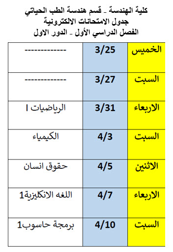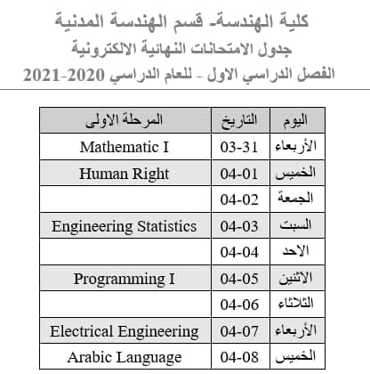 1. تبدأ الامتحانات بتاريخ (31 / 3) للمرحلة الأولى من الساعة 10 صباحا.