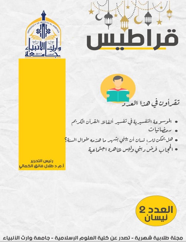 صدور العدد الثاني من مجلة قراطيس الطلابية والتي تصدر عن كلية العلوم الإسلامية في جامعة وارث الانبياء عليه السلام