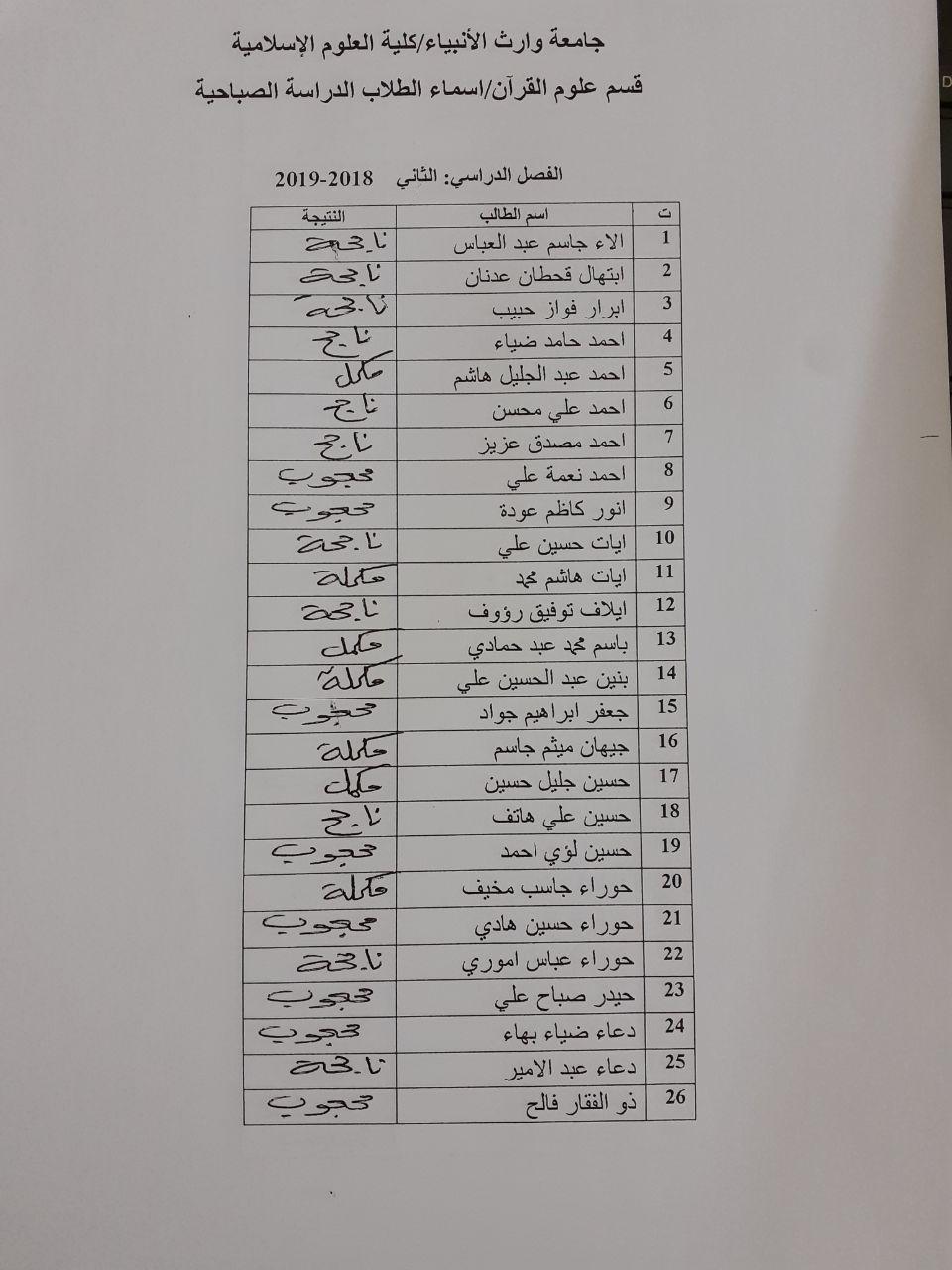نتائج طلبة كلية العلوم الاسلامية / قسم علوم القرآن