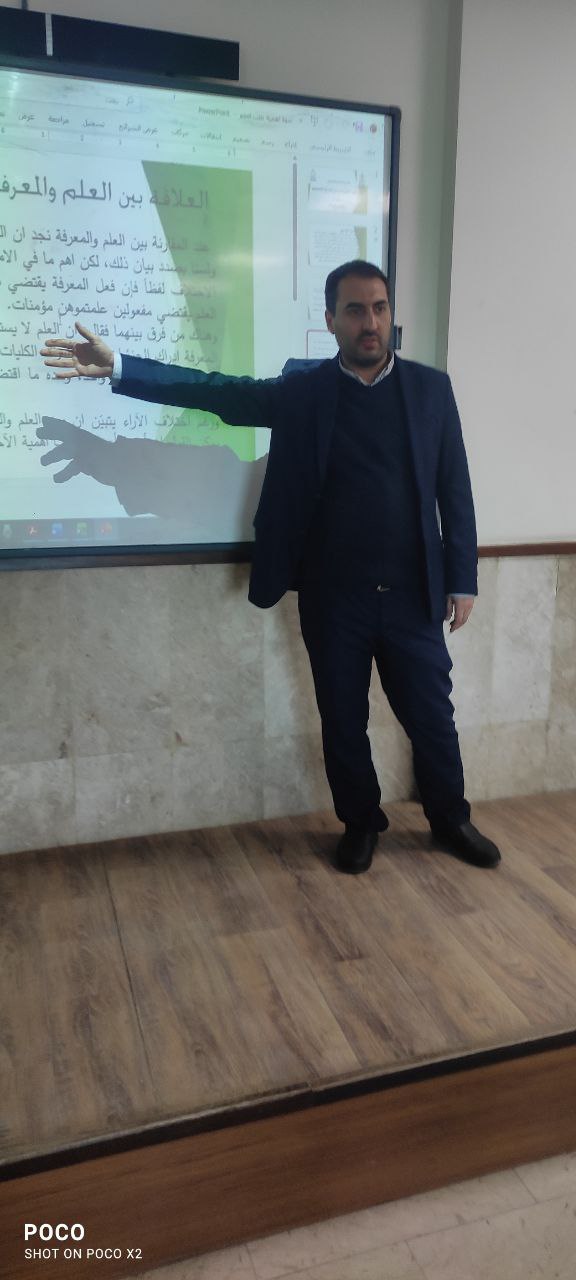 نظّمت كلية العلوم الإسلامية ندوة علمية بعنوان "أهمية طلب العلم والمعرفة في القضايا الاعتقادية"، حاضر فيها التدريسي م.م. مرتضى محمد، بحضور جمعٍ من طلبة الكلية وعدد من التدريسيين.