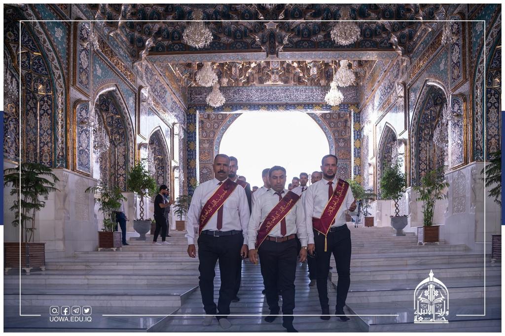 اذ ردد الطلبة قسم التخرج أمام ضريح سيد الشهداء الامام الحسين(عليه السلام)، من أجل الامتثال للواجب الوطني والإنساني على أتم وجه، ونشر العلم والمعرفة والاخلاص والالتزام باخلاقيات العمل، وحمل رسالة الامام الحسين عليه السلام والعتبة الحسينية المقدسة في جعل خريجيها متميزين على كافة الصعد ومثالا يحتذى به.