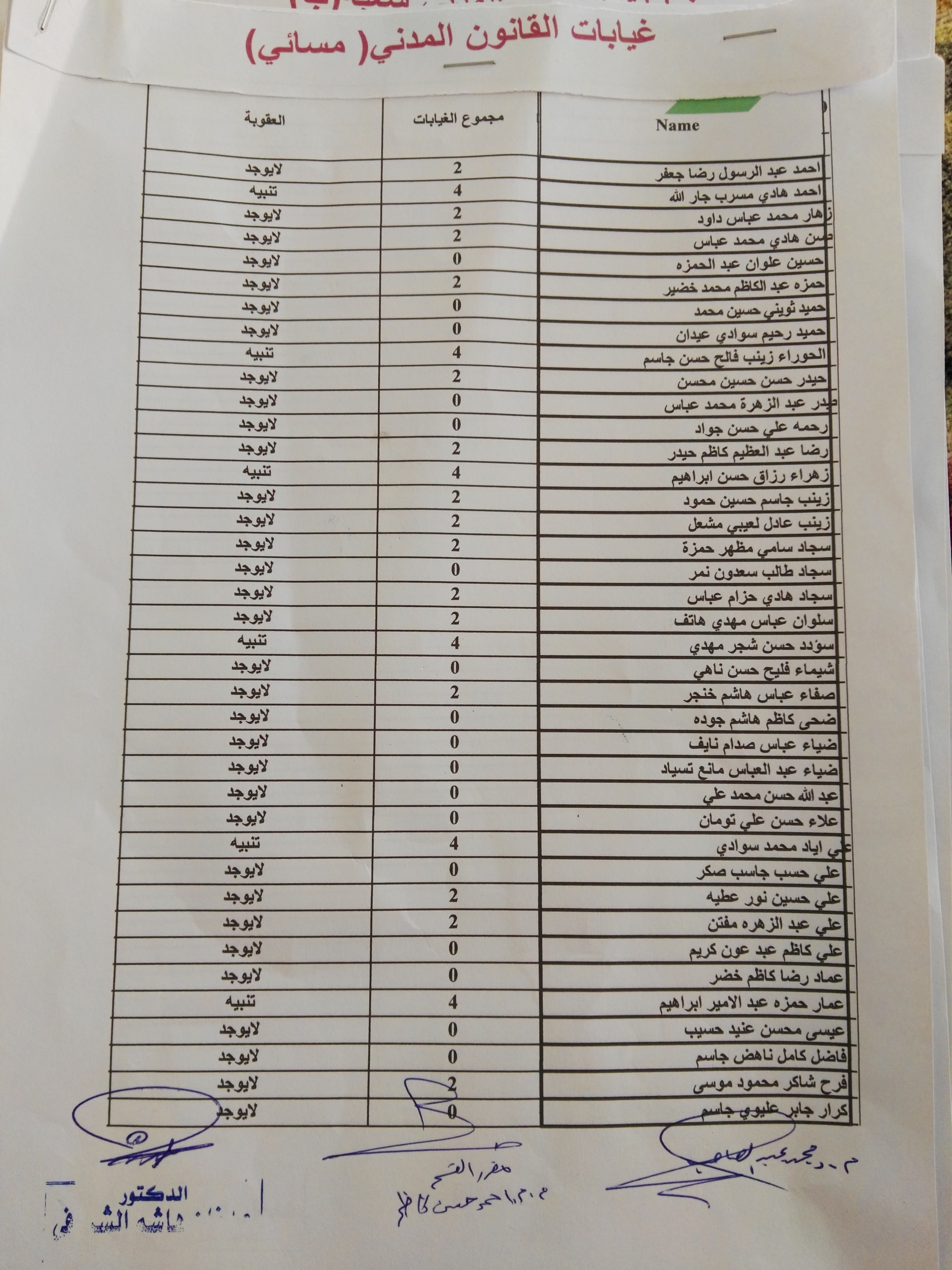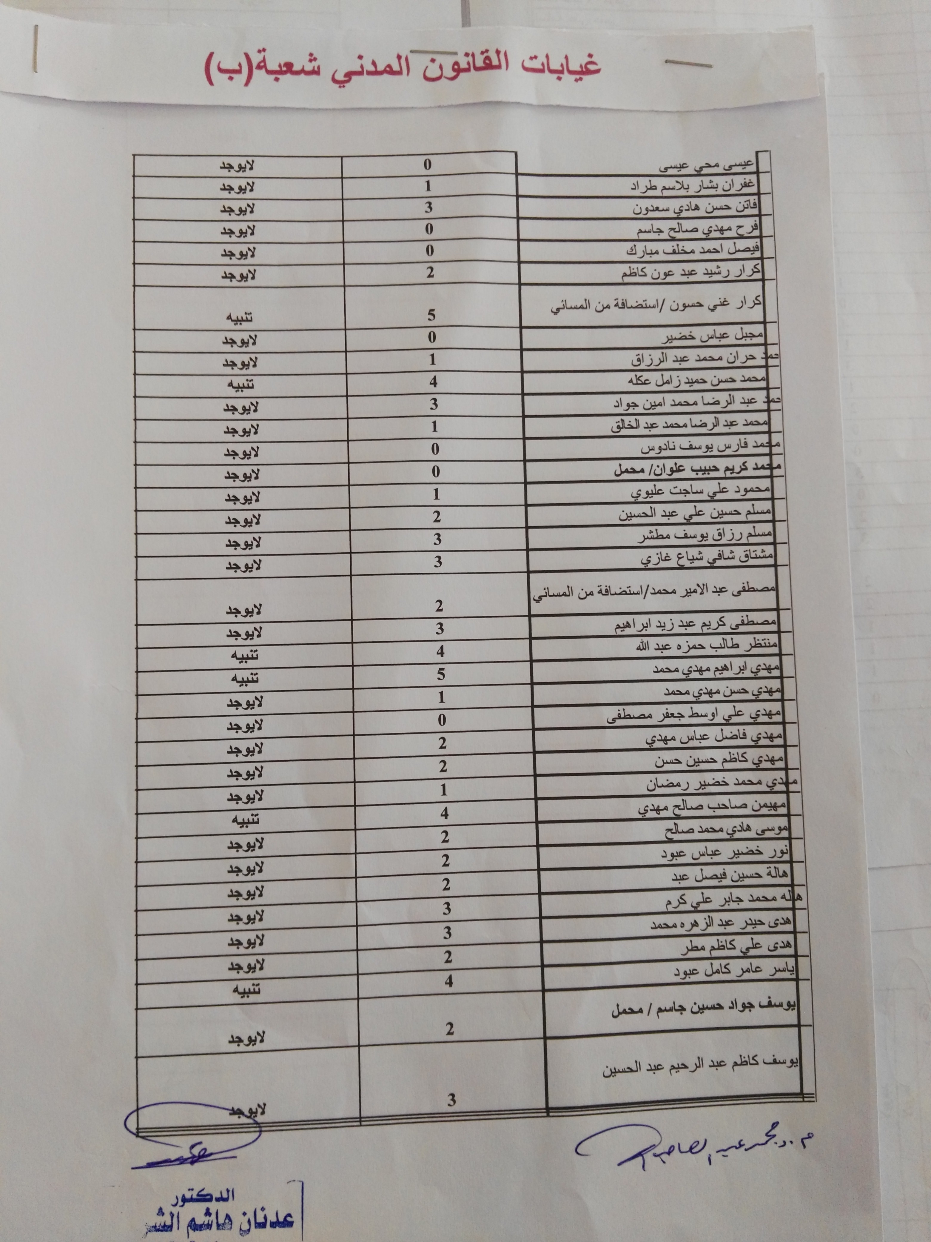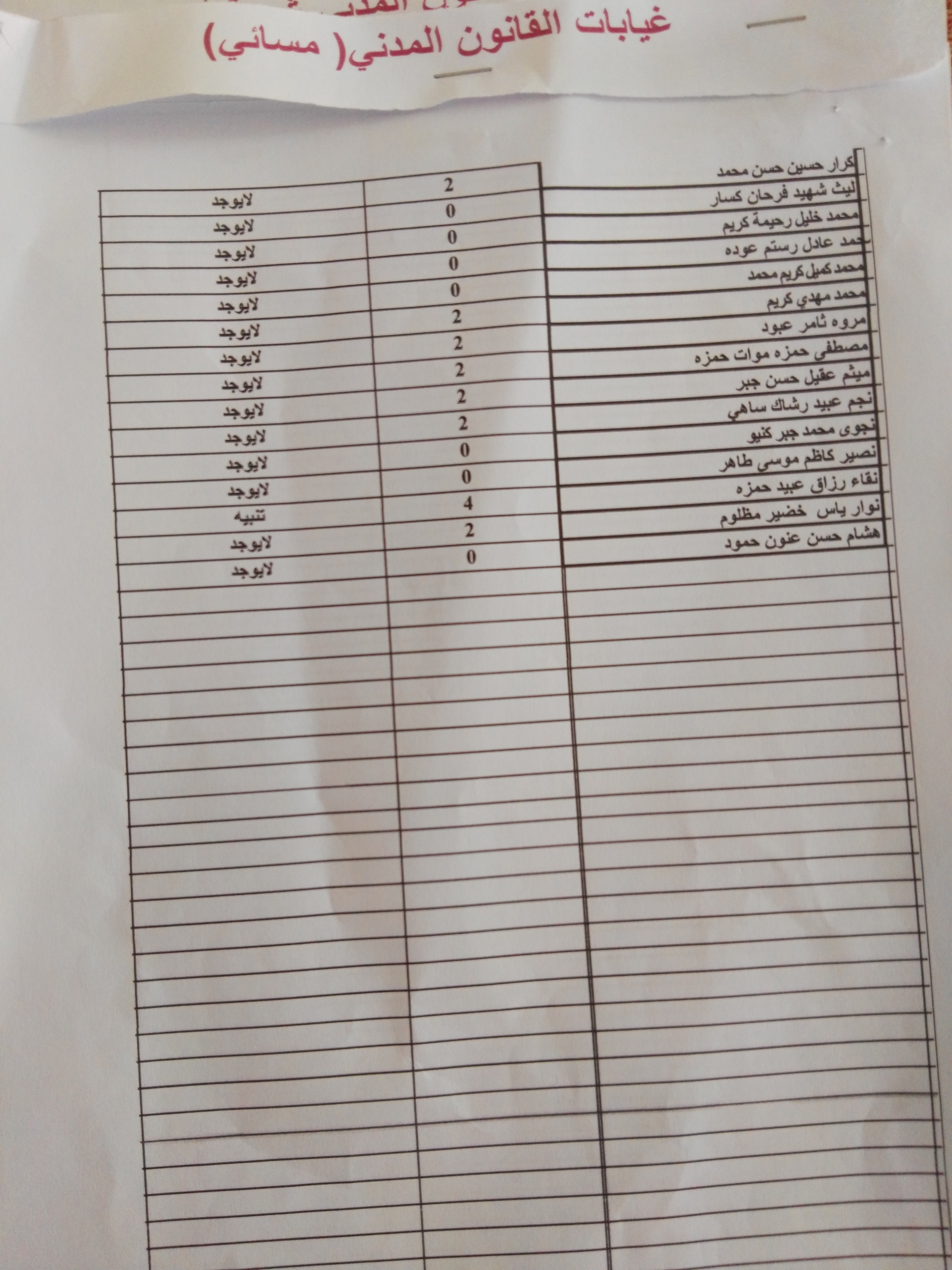 غيابات مادة القانون المدني(المرحلة الثانية)