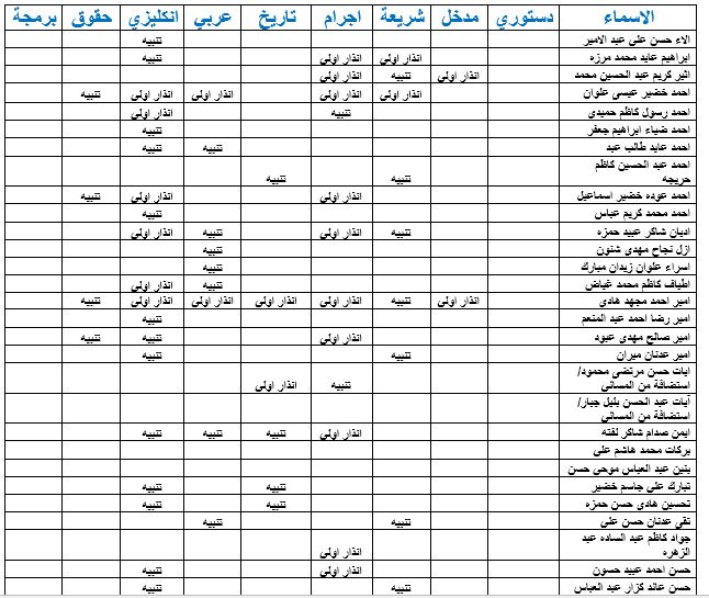 غيابات المرحلة الاولى شعبة(أ)