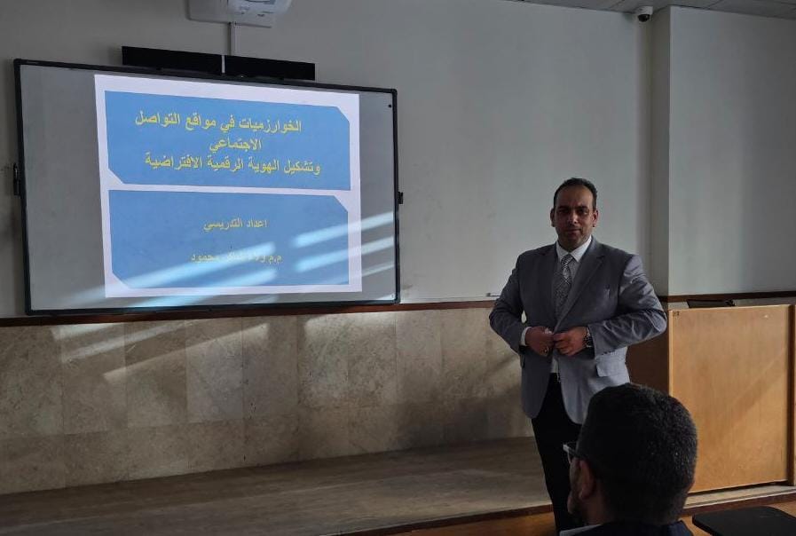 واضاف ان الكلية اقامت ورشة متخصصة في مجال (الخوارزميات في مواقع التواصل الاجتماعي وتشكيل الهوية الرقمية)، لافتا الى انه في ظل التحولات الرقمية أصبحت الخوارزميات تمارس دورًا محوريا في تخصيص المحتوى الخاص بالأفراد، مما يؤثر على تفاعلاتهم وهوياتهم الرقمية.