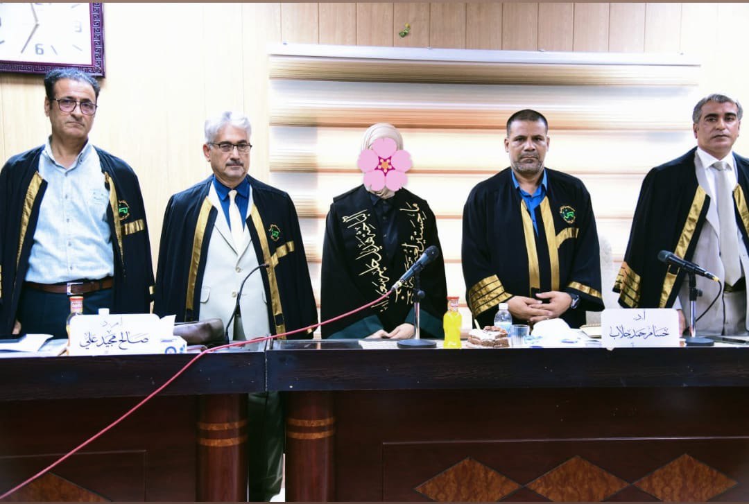 تمت المناقشة في قسم اللغة العربية على قاعة الفراهيدي وتضمنت مداخلات ومناقشات من قبل اللجنة وبحضور مختصين .