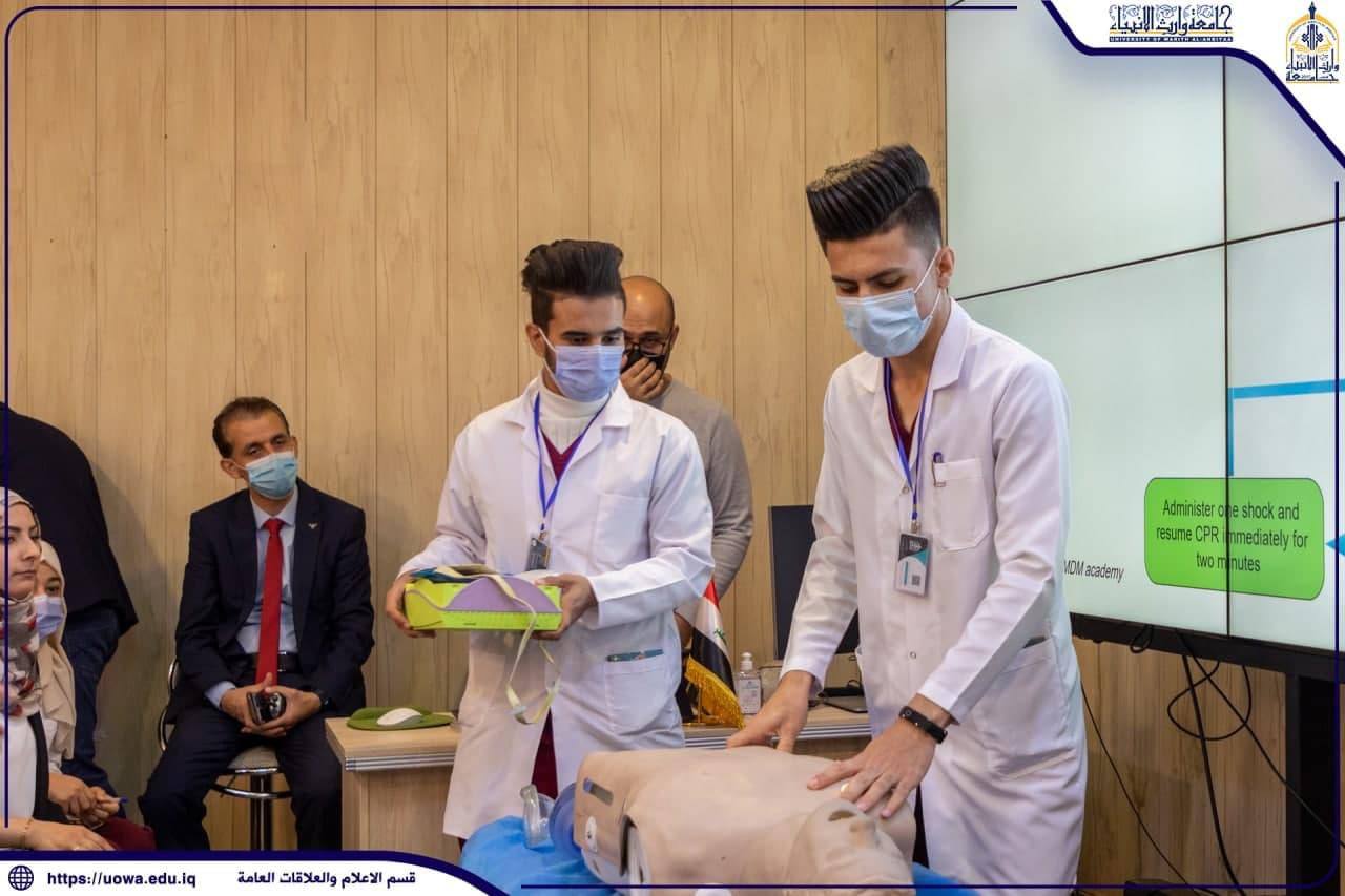 بحضور سماحة المتولي الشرعي للعتبة الحسينية المقدسة الشيخ عبد المهدي الكربلائي (دام عزه) والسيد رئيس الجامعة الاستاذ الدكتور ابراهيم الحياوي، أقامت كلية الطب وبإشراف هيئة الصحة والتعليم الطبي في العتبة الحسينية المقدسة، ورشة عمل لطلبة الكلية بعنوان (أساسيات انقاذ الحياة) ضمن المتطلبات العلمية لتطوير مهارات طلبة كلية الطب عبر الاستعانة بمدربين من أكاديمية طب الحشود والطوارئ.واطلع سماحته على الدورة التدريبية الأولى في دعم انقاذ الحياة الاساسية (Basic life support )لطلبة المرحلة الثانية في كلية الطب ضمن برنامج تدريب المهارات الاجرائية في مركز المحاكاة الخاص بمستشفى الامام زين العابدين (ع )من قبل مدربي أكاديمية طب الحشود والطوارئ.وتضمن البرنامج التعليمي والتدريبي لطلبة الكلية ثلاثين مهارة يتعلمها الطالب لدرجة التمكن التام وحسب المعايير العالمية.