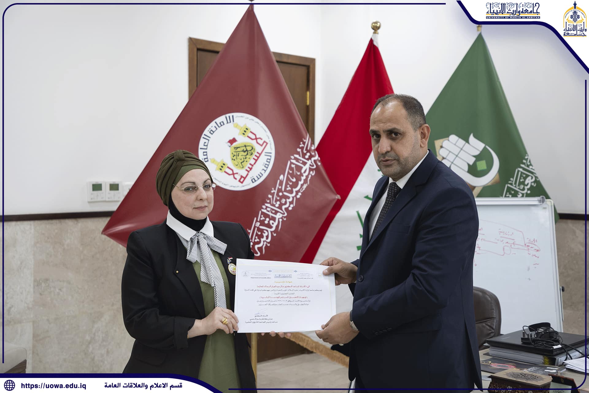 استقبلت جامعة وارث الأنبياء(عليه السلام)، الثلاثاء، وفداً من جامعة الموصل لبحث إمكانية توقيع مذكرة تعاون علمي بين الطرفين.وأعرب الوفد الزائر برئاسة عميد كلية العلوم في جامعة الموصل د.هيام عادل الطائي، عن إعجابه بالبنى التحتية لجامعة وارث الأنبياء(عليه السلام) بوصفها صرحاً علمياً يفتخر به العراق ووزارة التعليم العالي والبحث العلمي، وهي ترقى إلى مستوى الجامعات العالمية من حيث امتلاكها أحدث الأجهزة والمختبرات ووجود الخبرات الأكاديمية والتخصصات الدقيقة. وأكد الوفد استعداده لتوقيع مذكرة تعاون علمي على أعلى المستويات، معربا في الوقت نفسه عن امتنانه وشكره لرئاسة جامعة وارث الأنبياء(عليه السلام) على حفاوة الاستقبال وحسن الضيافة.