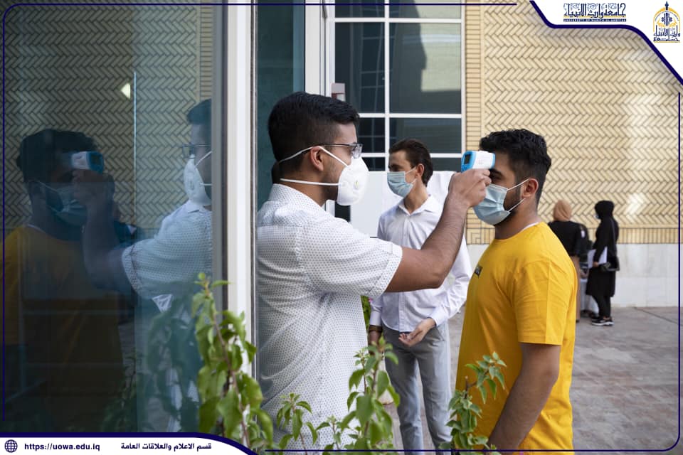 كما تولي اهتماما بالغاً في توفير متطلبات الصحة والسلامة من خلال توفير المعقمات واجهزة قياس درجة الحرارة وطلب كارت التلقيح او المسحة والتباعد المكاني بين الطلبة حفاظاً على سلامة ابناءنا الطلبة الاعزاء.
