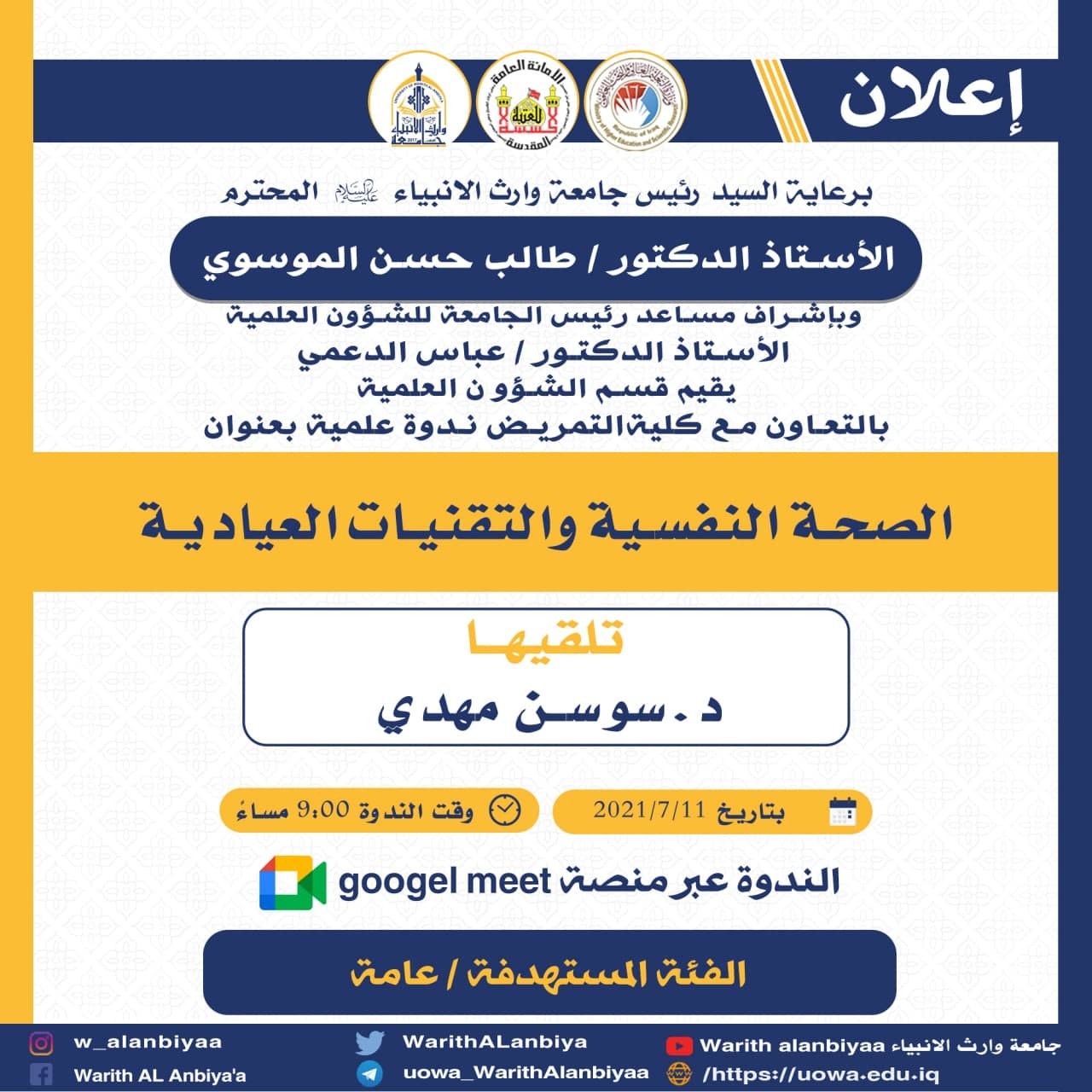 (التعلم المحاسبي في ظل جائحة كورونا)بورشة علمية في جامعة وارث الانبياء (عليه السلام)