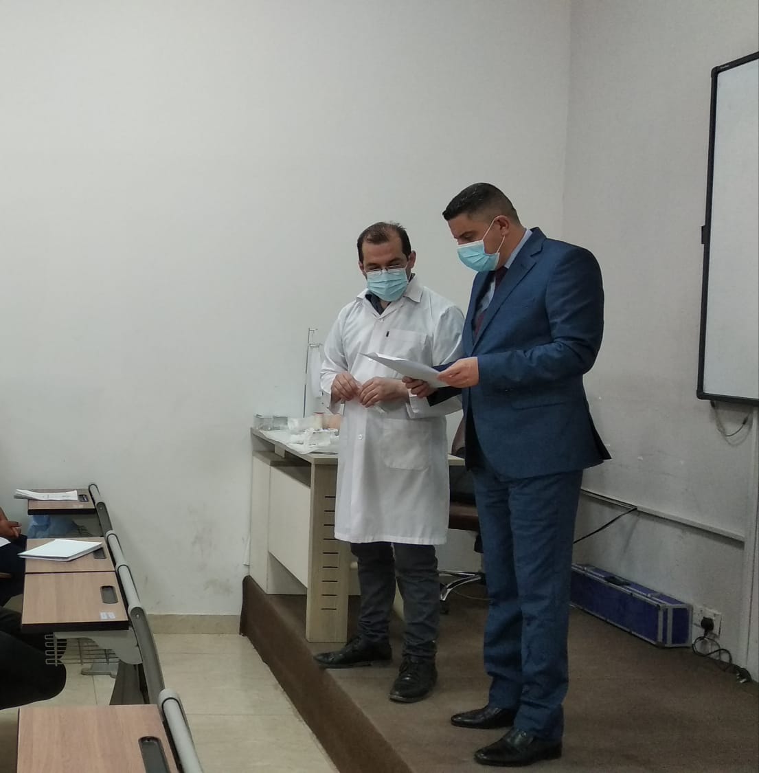 قام السيد عميد كلية التمريض ( ا.م.د مرتضى غانم عداي ) مع السادة رؤساء الفروع العلمية في الكلية ( ا.م.د نسيم صقر   و   م.د حسين المفرجي ) بجولة حول المختبرات العلمية والقاعات الدراسية في الكلية لتهيأتها استعدادا لبدء الفصل الدراسي الثاني لعام 2020-2021 .