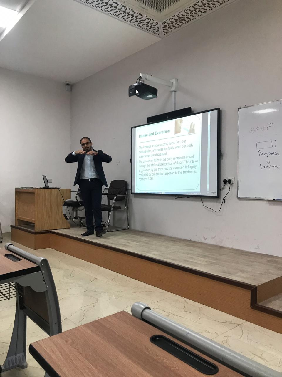 القاها كل من الاستاذ ذوالفقار عباس المسعودي والاستاذ عبدالرضا محمد الاسدي، في مختبر الفسلجة الطبية في كلية التمريض