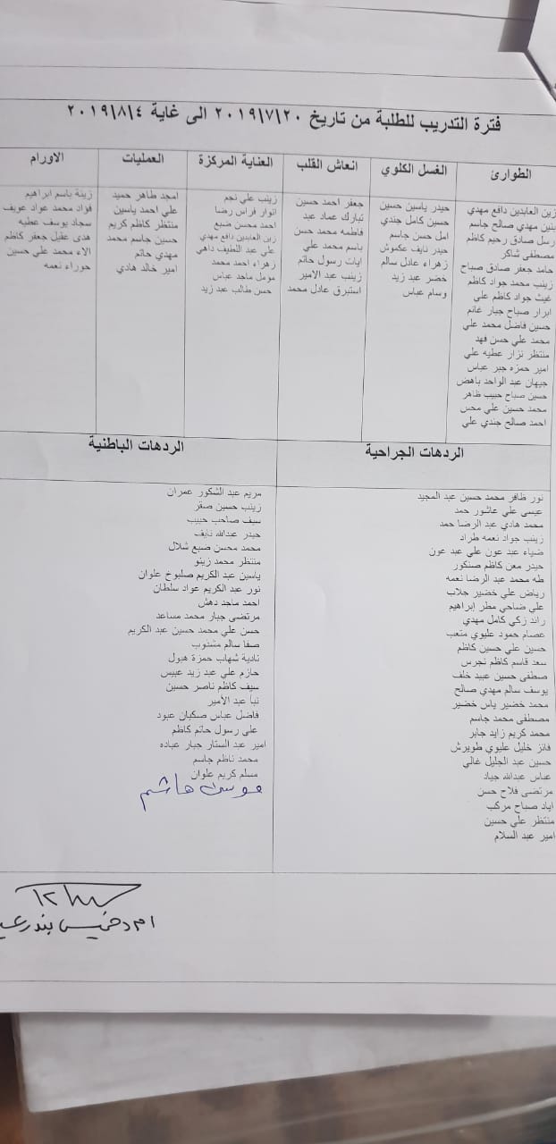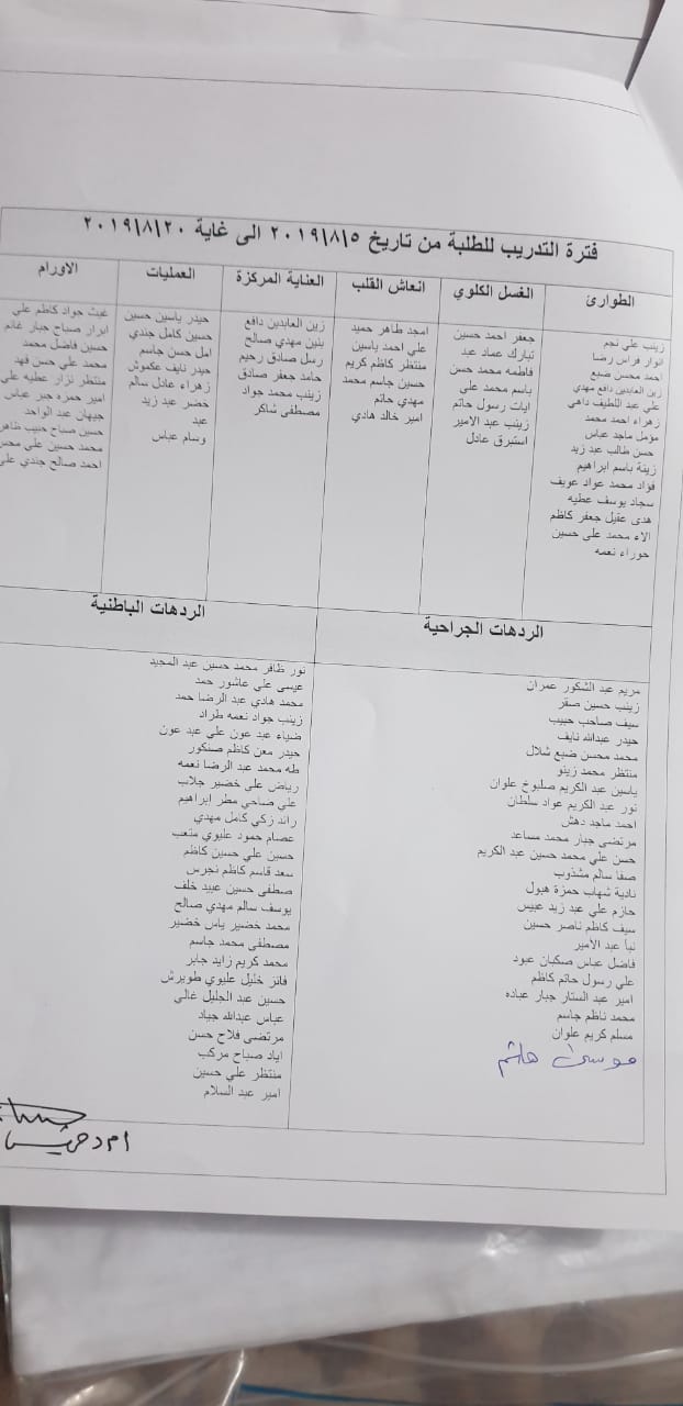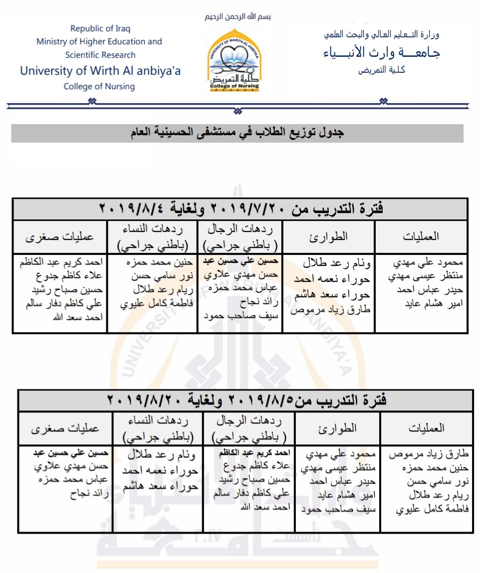 جداول توزيع طلبة المرحلة الثانية للتدريب الصيفي في المستشفى للعام الدراسي 2018/2019