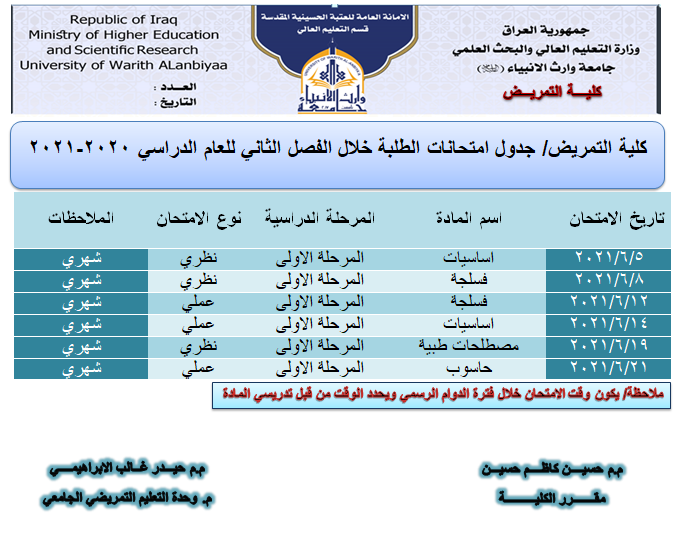 اعزائنا الطلبة جدول امتحانات الشهر الاول للفصل الدراسي الثاني مع امنياتنا لكم بالموفقية والنجاح