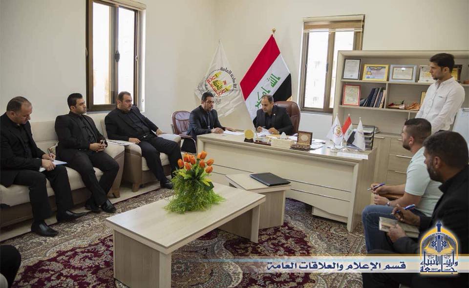حرصاً من جامعة وارث الأنبياء على خدمة المجتمع عامة وخدمة زوار الامام الحسين (عليه السلام) خاصه ،التقى السيد رئيس الجامعة الاستاذ الدكتور طالب حسن الموسوي بوفد من طبابة هيئة الحشد الشعبي لمناقشة امكانية التعاون المشترك لتقديم افضل الخدمات الطبية لزوار أربعينية الامام الحسين (ع) وعبر رئيس الجامعة عن دعائه وتثمينه للجهود المبذولة من قبل الحشد الشعبي في كافة الميادين وايضا في خدمة زوّار الامام الحسين وأخيه ابي الفضل العباس (عليهم السّلام)