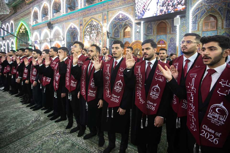 وشهدت المناسبة مشاركة الخريجين في المراسيم العبادية ونداء العقيدة، تأكيدًا على أن مسيرتهم المهنية تنطلق من مبادئ خدمة الإنسان وصون الحياة، وأن رسالتهم الطبية ترتكز على المسؤولية الأخلاقية والإنسانية في رعاية المجتمع.
