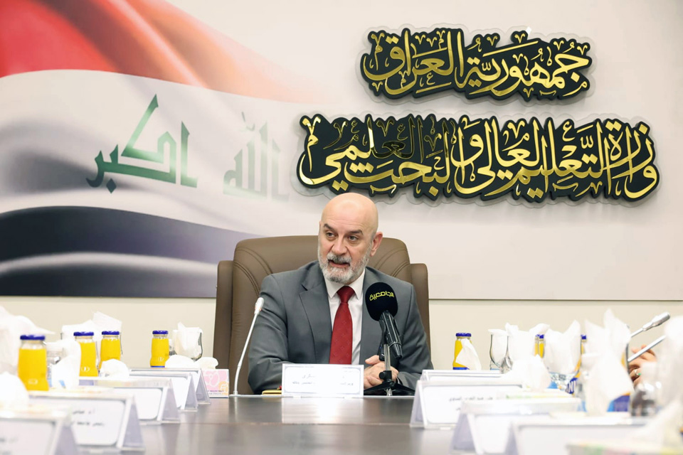ترأس وزير التعليم العالي والبحث العلمي وكالة الدكتور هه لو العسكري اجتماعا للملاك المتقدم وأكد أهمية تعزيز الأداء المؤسسي الرصين والتكامل الذي يصب بمصلحة جودة العملية التعليمية وفاعلية الخدمات الأكاديمية والعلمية المقدمة للمجتمع.وفي مستهل الاجتماع أعرب الدكتور العسكري عن اعتزازه بتكليفه بتسيير شؤون وزارة التعليم العالي والبحث العلمي إلى جانب مهامه في وزارة البيئة بموجب أمر ديواني صادر عن مكتب رئيس مجلس الوزراء.