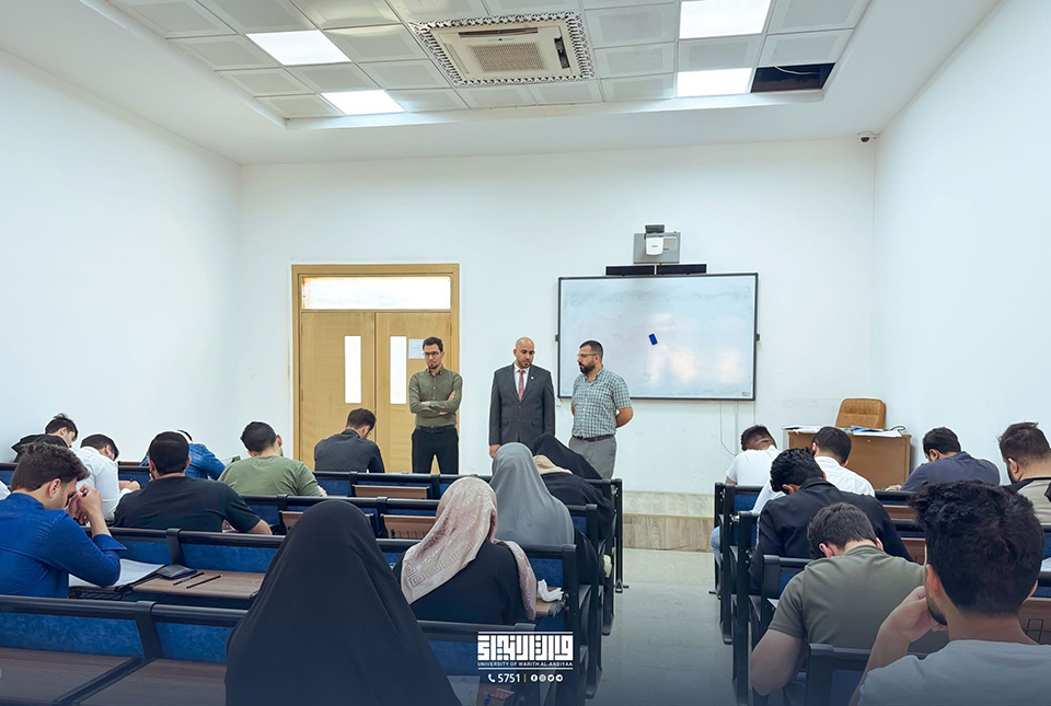 وقد تمت متابعة سير الامتحان من قبل لجنة أكاديمية من جامعة كربلاء، إلى جانب أساتذة القسم وعمادة الكلية، وذلك لضمان تطبيق أعلى معايير الجودة والرصانة العلمية في العملية الامتحانية، بما يعزز من كفاءة مخرجات التعليم العالي.