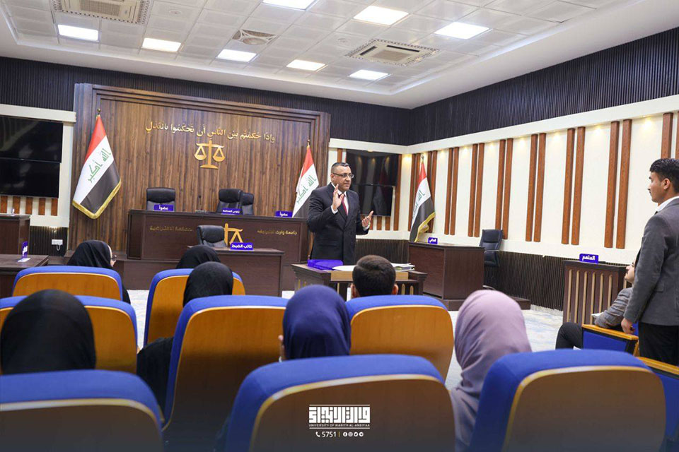 في إطار تعزيز التعاون العلمي بين محكمة استئناف كربلاء وكلية القانون في جامعة وارث الأنبياء (عليه السلام)، ألقى القاضي الأستاذ راسم الياسري، نائب رئيس محكمة استئناف كربلاء، محاضرة لطلبة المرحلة الثالثة ضمن مادة "المحكمة الافتراضية".
