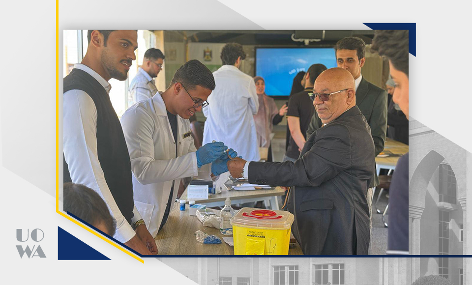نظّمت كلية التمريض في جامعة وارث الأنبياء (ع) حملة صحية داخل أروقة الجامعة، للتحري عن مرض السكري من خلال إجراء فحوصات مجانية لعدد من الأساتذة والطلبة، وذلك ضمن جهودها لتعزيز الصحة العامة ودعم أهداف التنمية المستدامة.تأتي هذه المبادرة في إطار الهدف الثالث من أهداف التنمية المستدامة (الصحة الجيدة والرفاه – SDG 3)، الذي يركز على ضمان حياة صحية وتعزيز الرفاه للجميع. وتهدف الحملة إلى التوعية بأهمية الكشف المبكر عن مرض السكري، ورفع مستوى الوعي حول أساليب الوقاية منه، حيث قام فريق من طلبة الكلية، بإشراف أساتذتهم، بإجراء قياسات لنسبة السكر في الدم للحاضرين.إلى جانب الفحوصات الطبية، قدم الفريق إرشادات ونصائح صحية حول العادات الغذائية السليمة، وأهمية النشاط البدني للحد من مخاطر الإصابة بالسكري، مما يعكس التزام الجامعة بمسؤوليتها المجتمعية في تعزيز صحة الأفراد وتحقيق التنمية المستدامة.