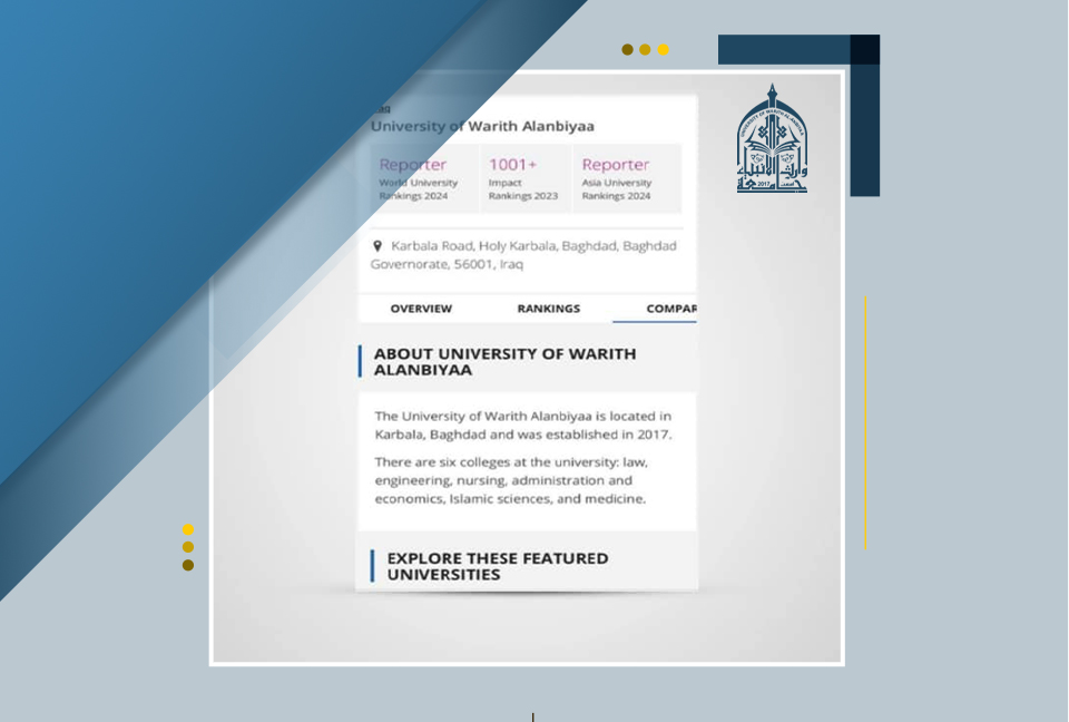 في إطار سعيها المتواصل لمواكبة التطورات العلمية، تألقت جامعة وارث الأنبياء (عليه السلام) بظهورها في التصنيف العالمي الصادر عن مؤسسة التايمز البريطانية للعام 2024.