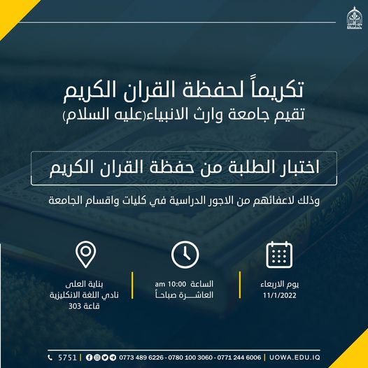 وذلك يوم الاربعاء الموافق 4-1-2023 في تمام العاشرة صباحاً على قاعة العلا في مبنى الجامعة.