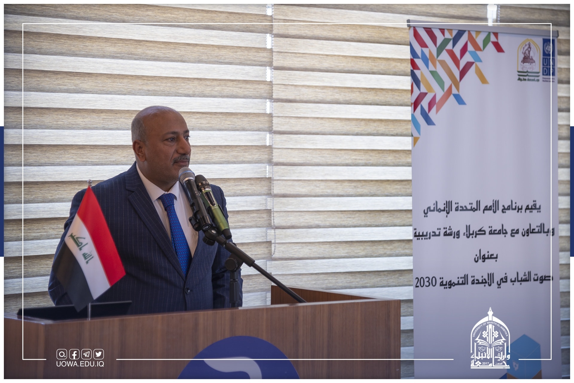 شارك طلبة الجامعة وبحضور السيد رئيس الجامعة الاستاذ الدكتور ابراهيم الحياوي، في الورشة التدريبية التي أقامها البرنامج الانمائي للأمم المتحدة UNDP لتشجيعهم على اطلاق أفكار خلاقة تسهم في حل مشاكل محلية يحددوها ضمن محيطهم من خلال تبني مبادرات ابداعية ترتبط بواحد أو أكثر من أهداف التنمية المستدامة SDGs