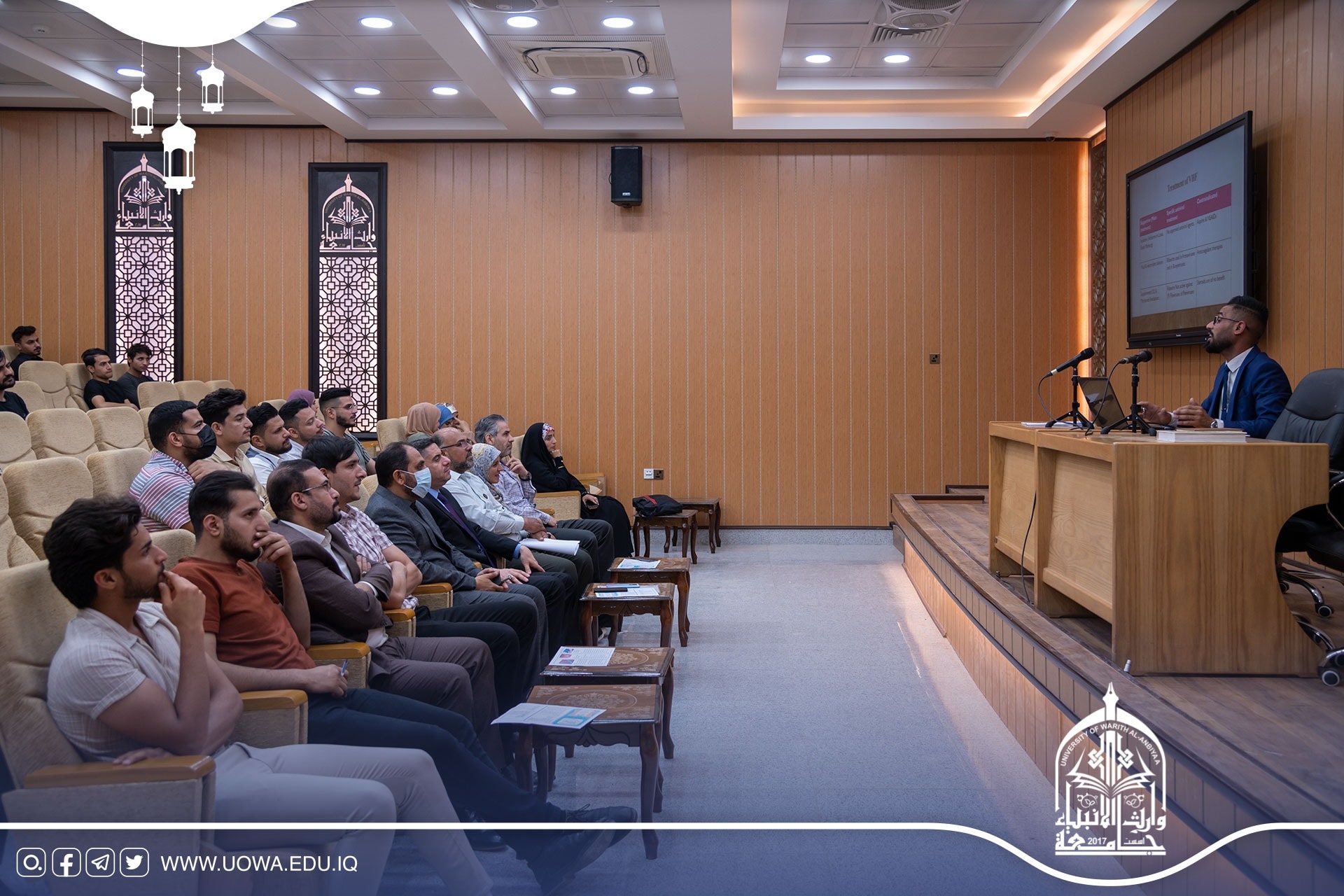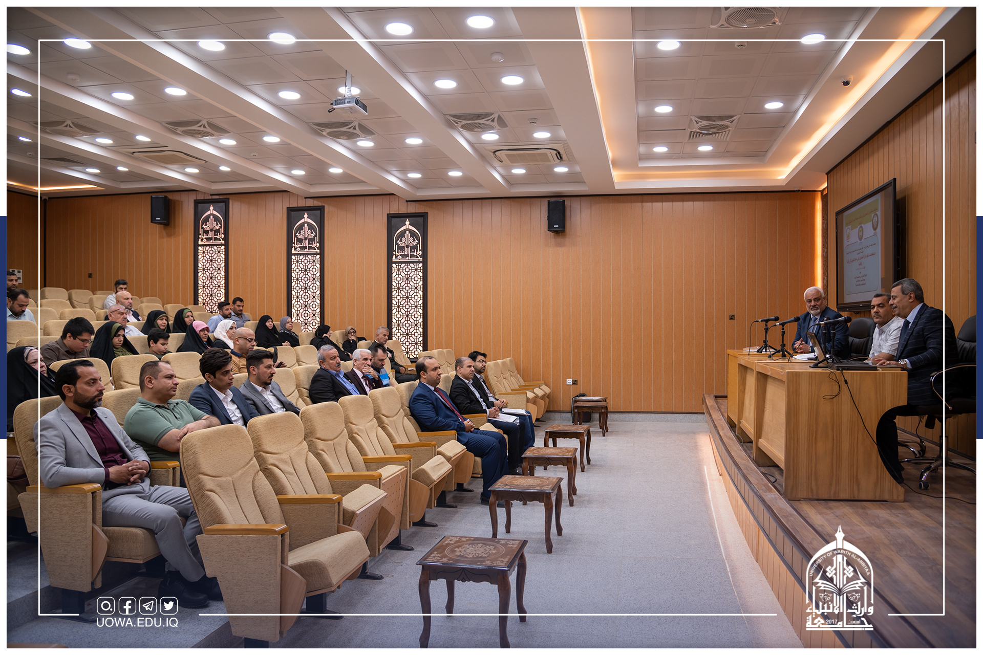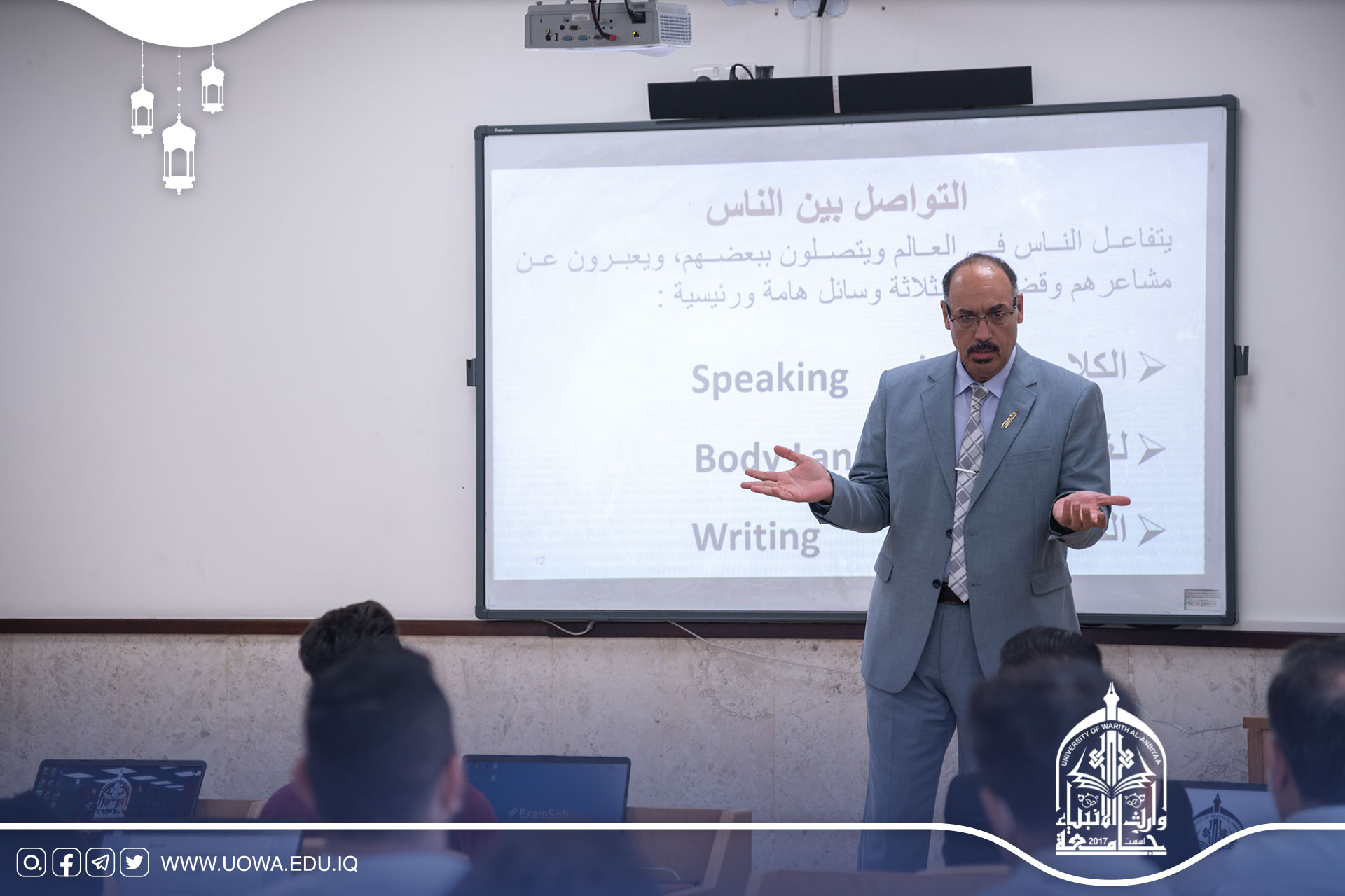 برعاية رئيس جامعة وارث الأنبياء (عليه السلام) الأستاذ الدكتور إبراهيم الحياوي يقيم مركز التعليم المستمر وبالتعاون مع العتبتين المقدستين ومؤسسة الشهداء/ كربلاء دورة تدريبية بعنوان "مهارات العرض والالقاء"